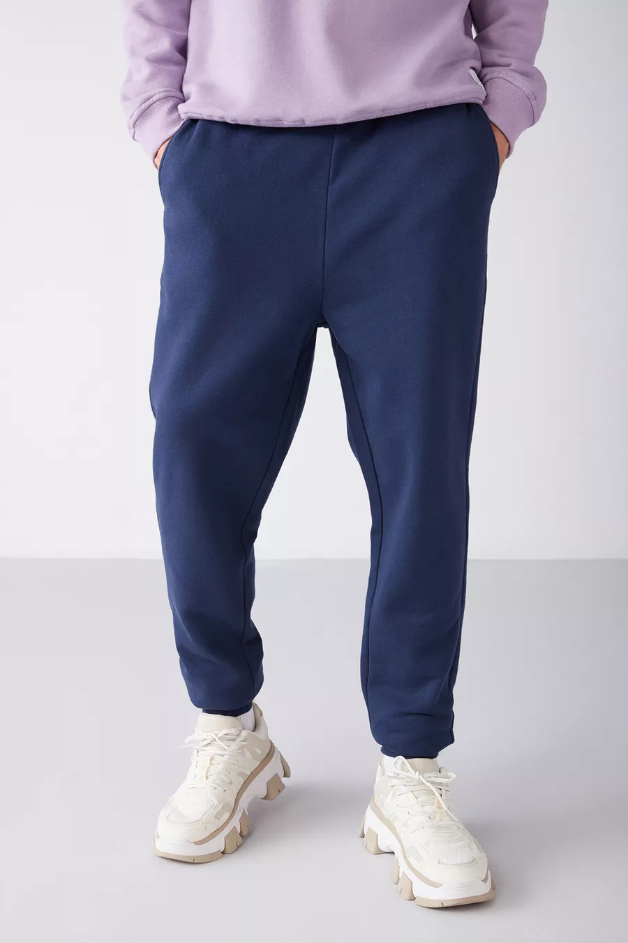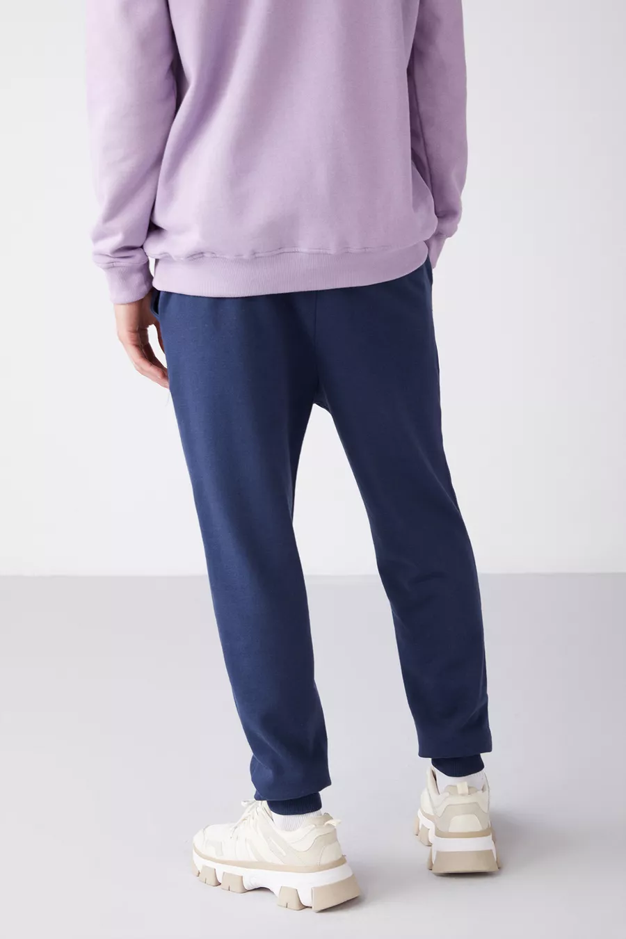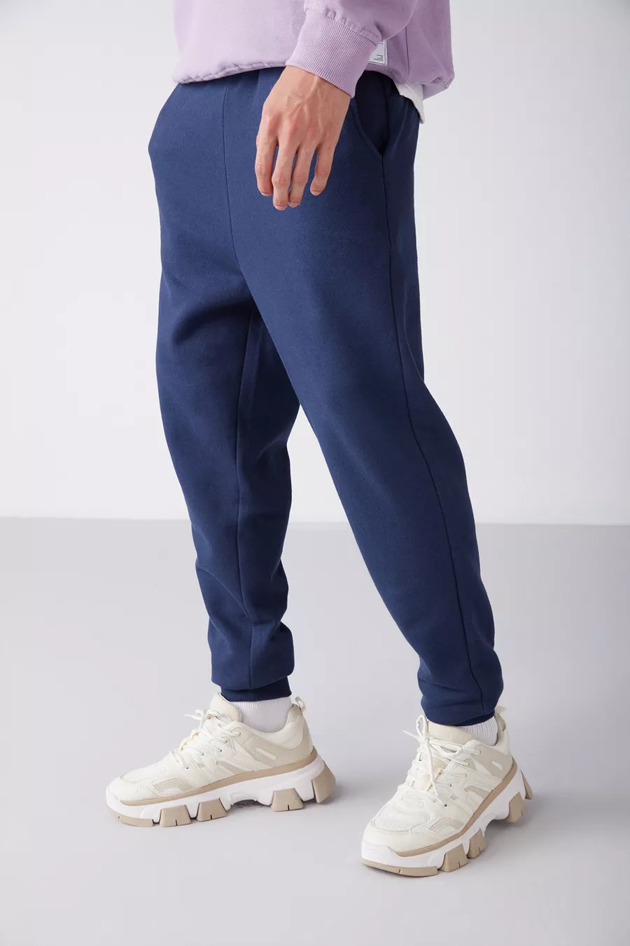 سروال رياضي رجالي جيرميا عادي الساق مصنوع من قماش مرن، بحزام وقابل للتعديل، مع جيوب باللون الأزرق الداكن