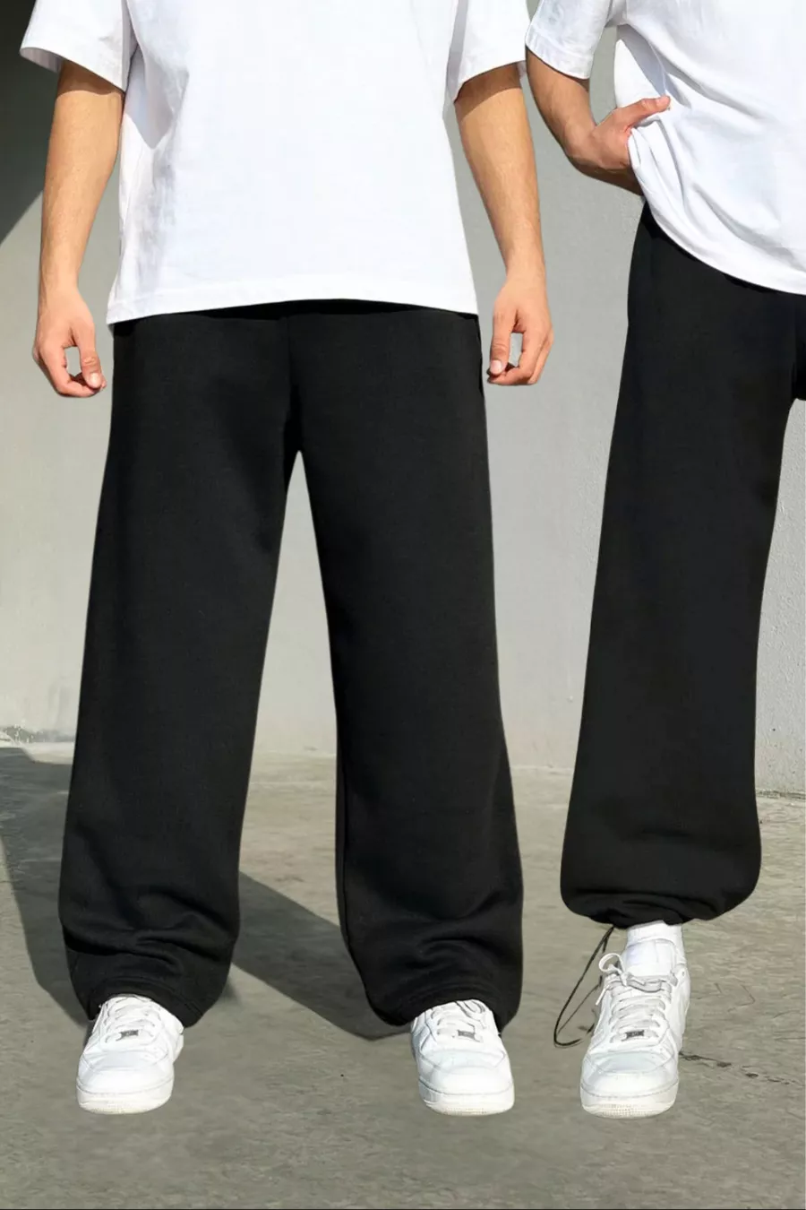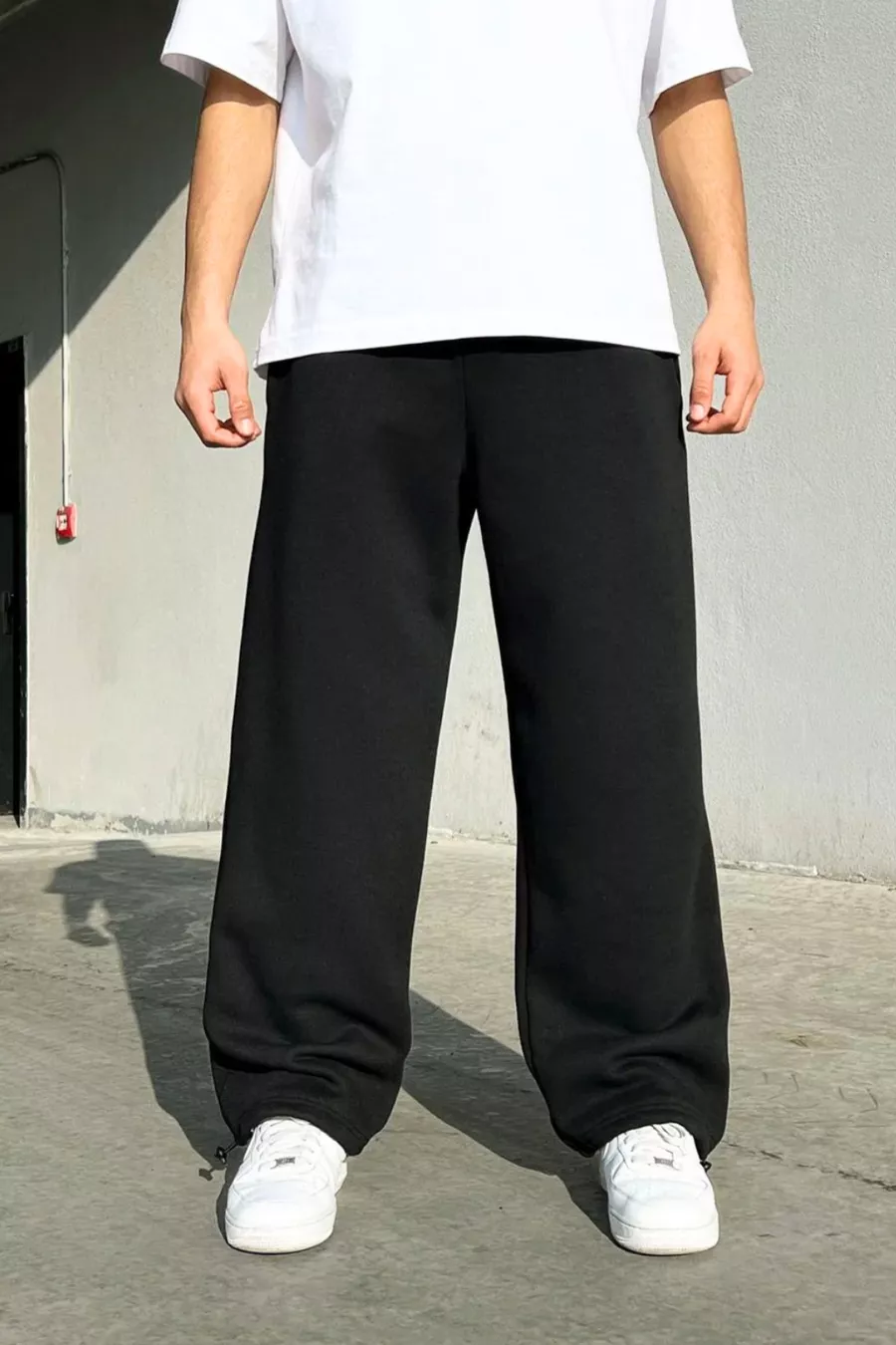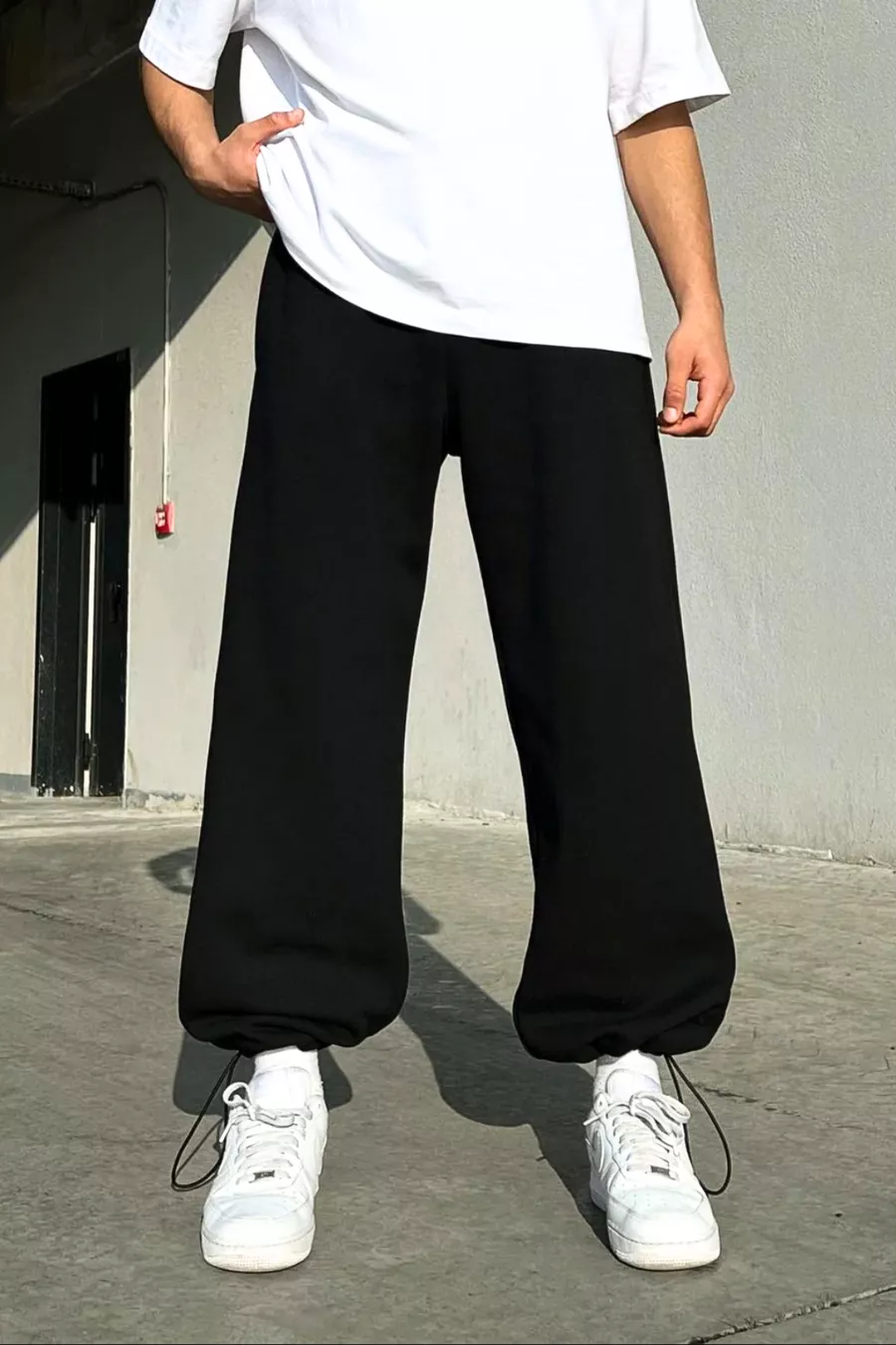 سروال رياضي فضفاض بساق قابلة للتعديل باللون الأسود والرمادي الدخاني