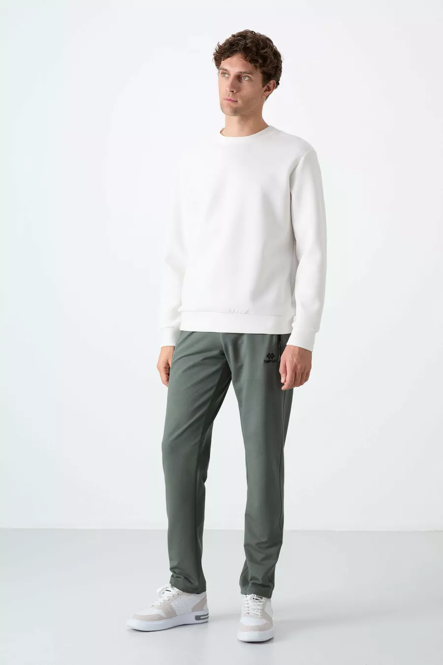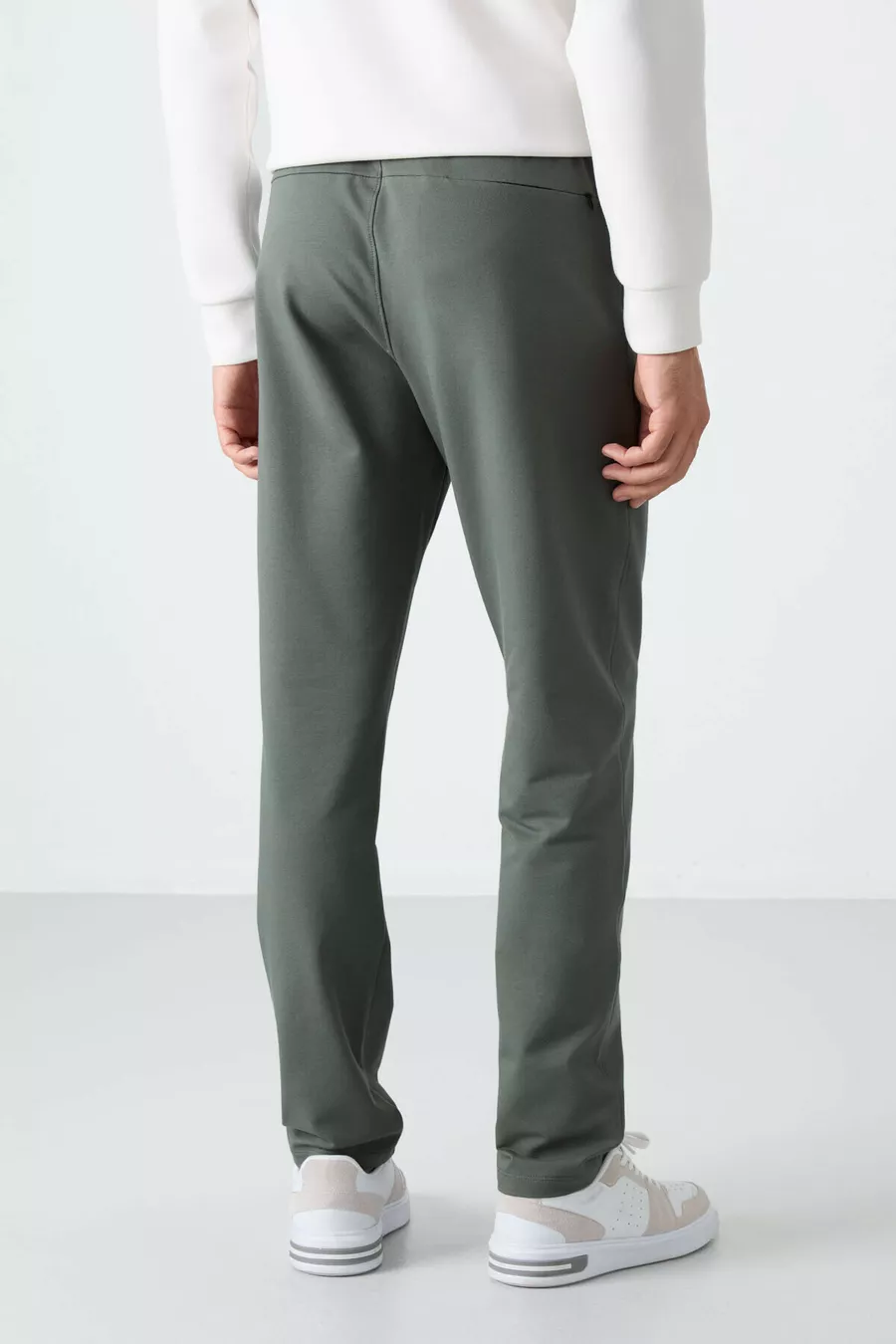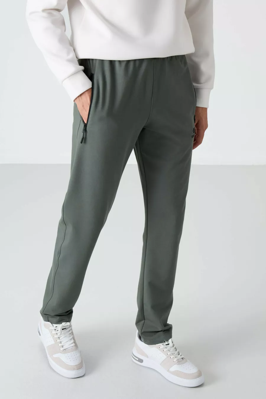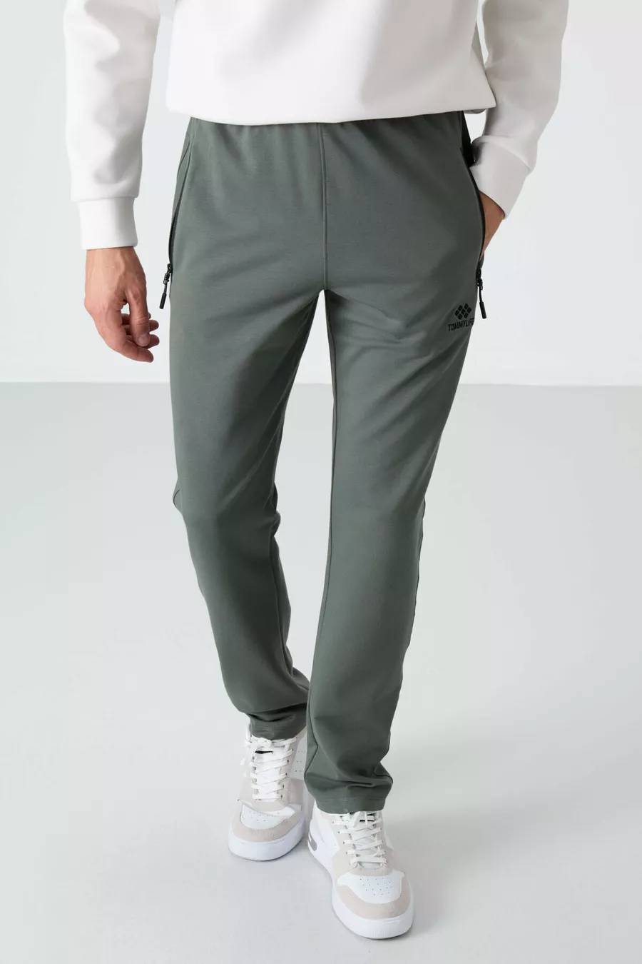 سروال رياضي رجالي ضيق بجيب ثلاثي بسحاب باللون الأخضر الزيتيني -