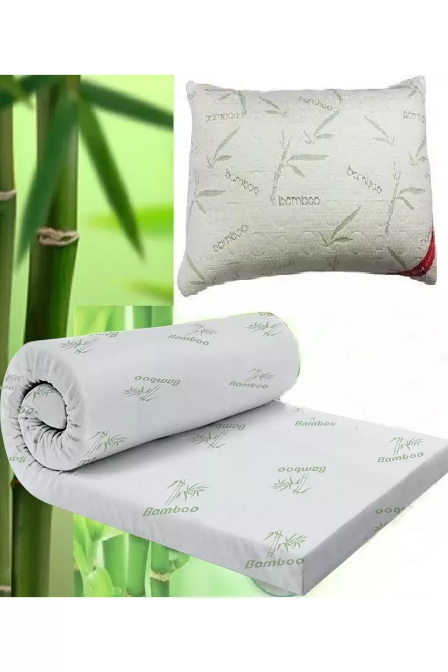 سرير أرضي من الخيزران قابل للطي مع مرتبة إسفنجية بحجم سم (مع وسادة خيزران كهدية)