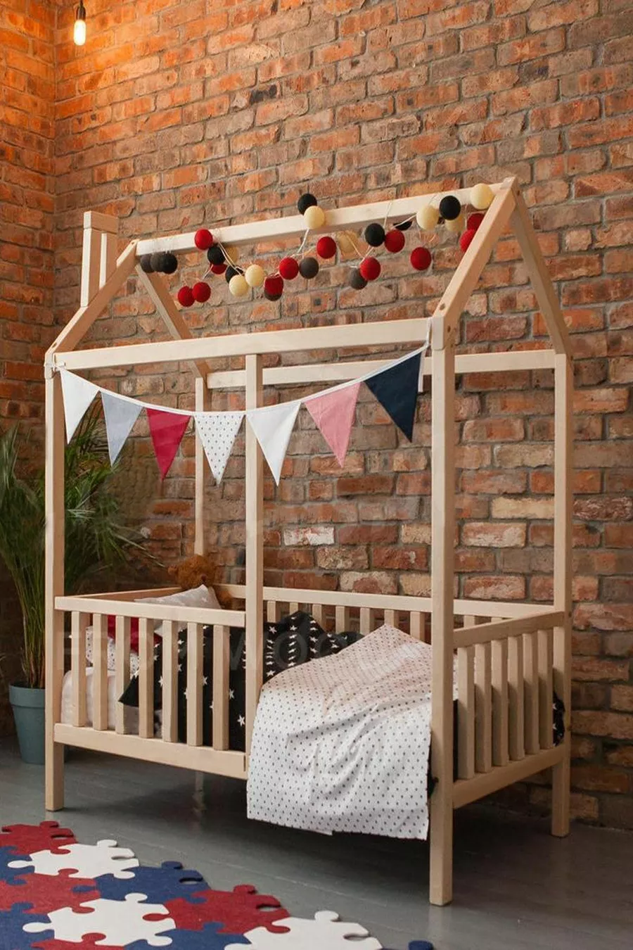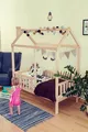 سرير أطفال ورضع للجنسين بأسلوب مونتيسوري مع سقف مصنوع من الخشب الطبيعي
