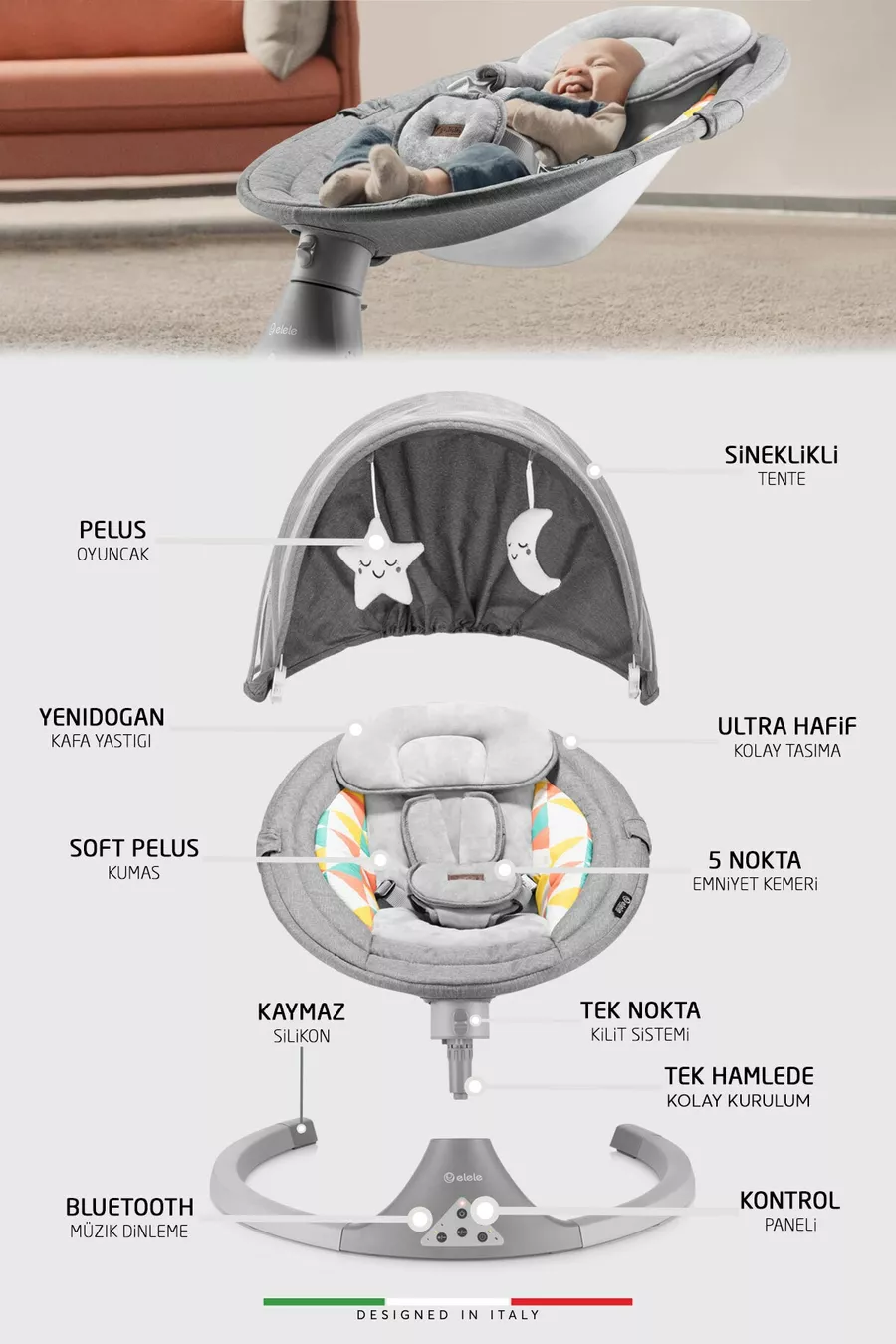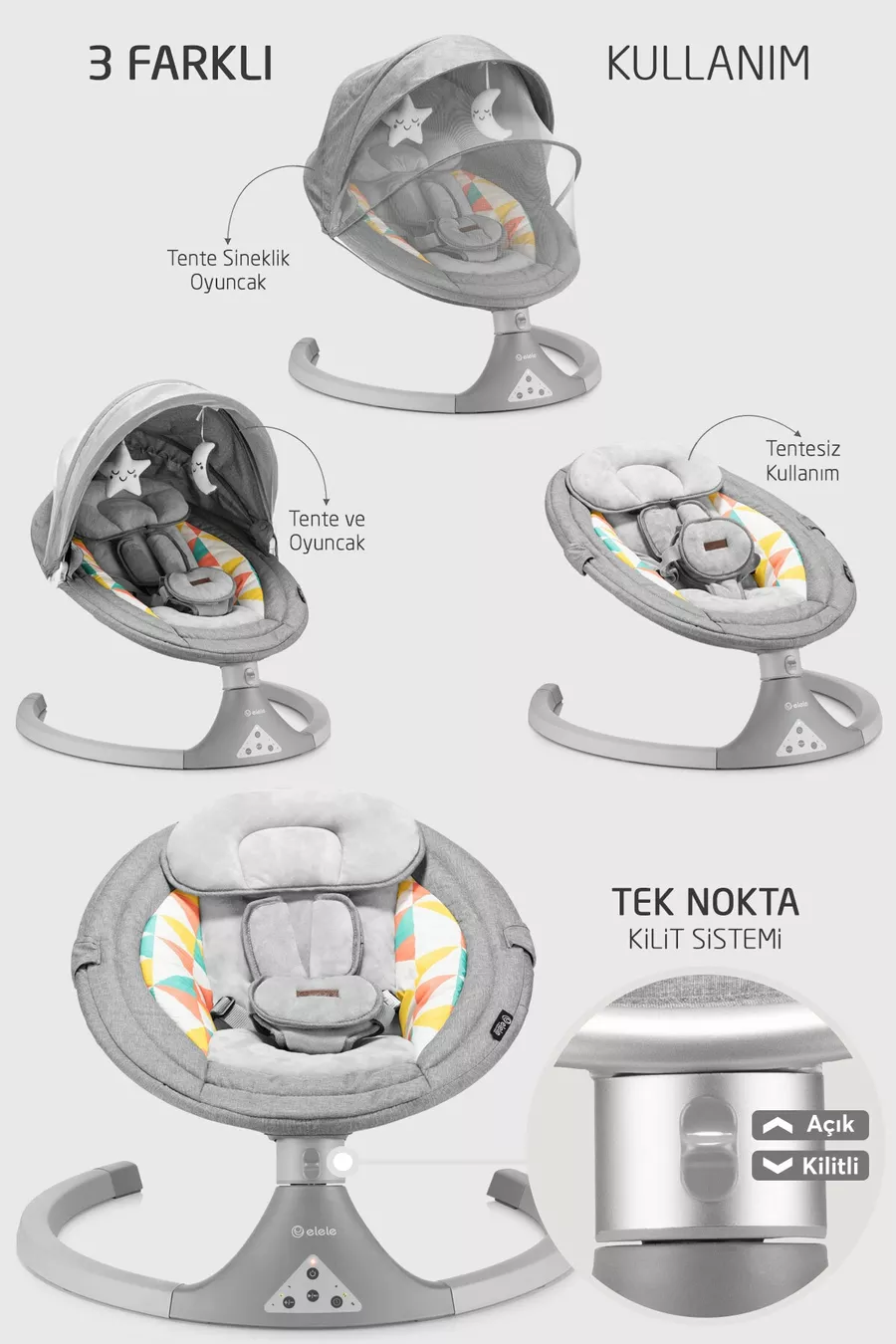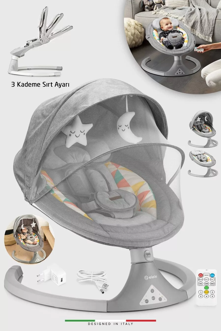 سرير أطفال كهربائي أوتوماتيكي متأرجح بدرجات رمادي
