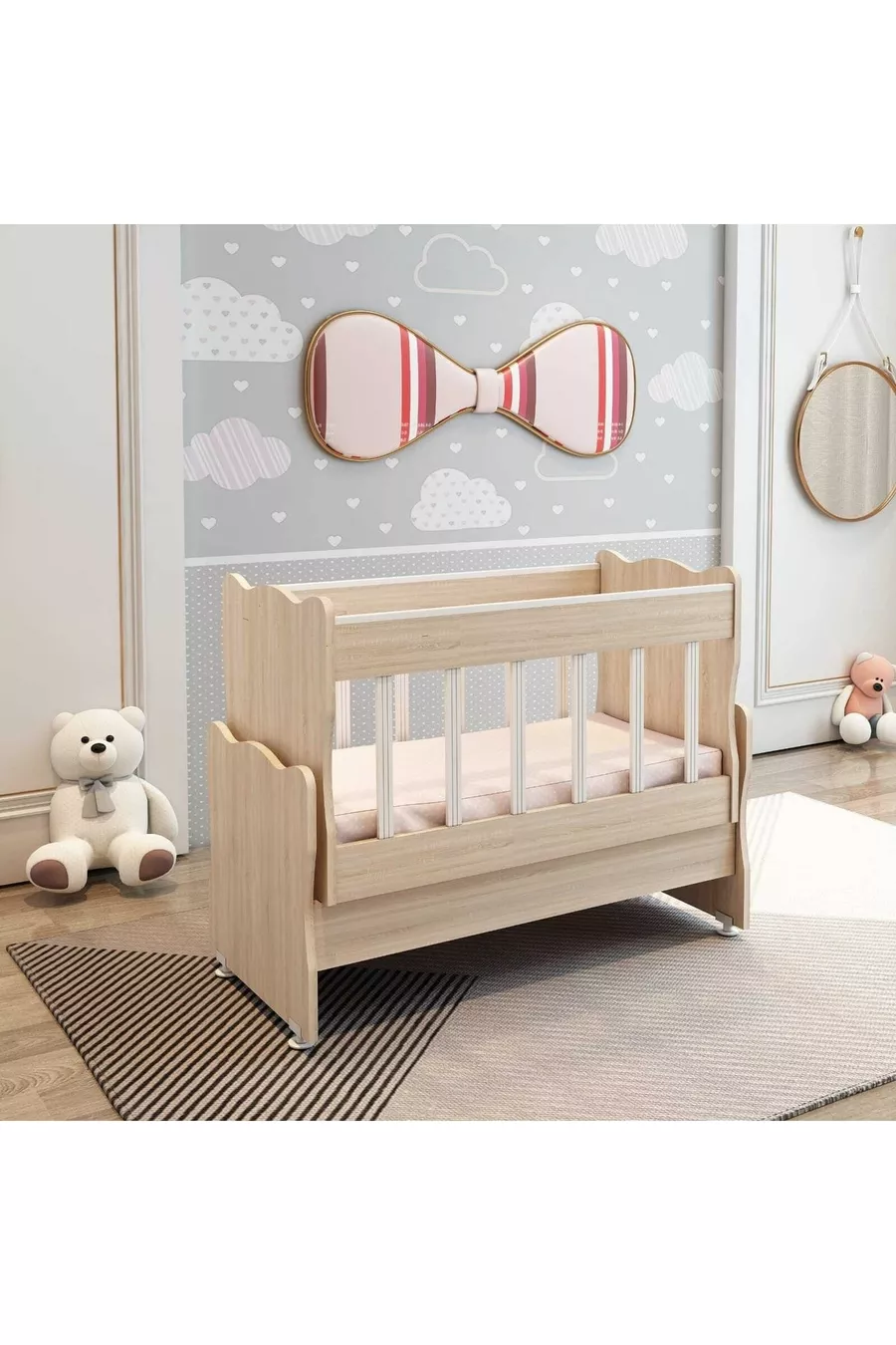 المادة: سنتالام اللون: وردي سعة التحميل: 0 - 18 كغ مدة الضمان: 3 سنوات الوظيفة: يهتز نوع الاستخدام: بجانب الأم وظيفة التأرجح: موجودة العرض: 106 سم مقاس السرير الداخلي: 50 × 100 العمق: 55 سم الارتفاع: 85 الموضوع / النمط: إسكندنافي الميزة: يهتز