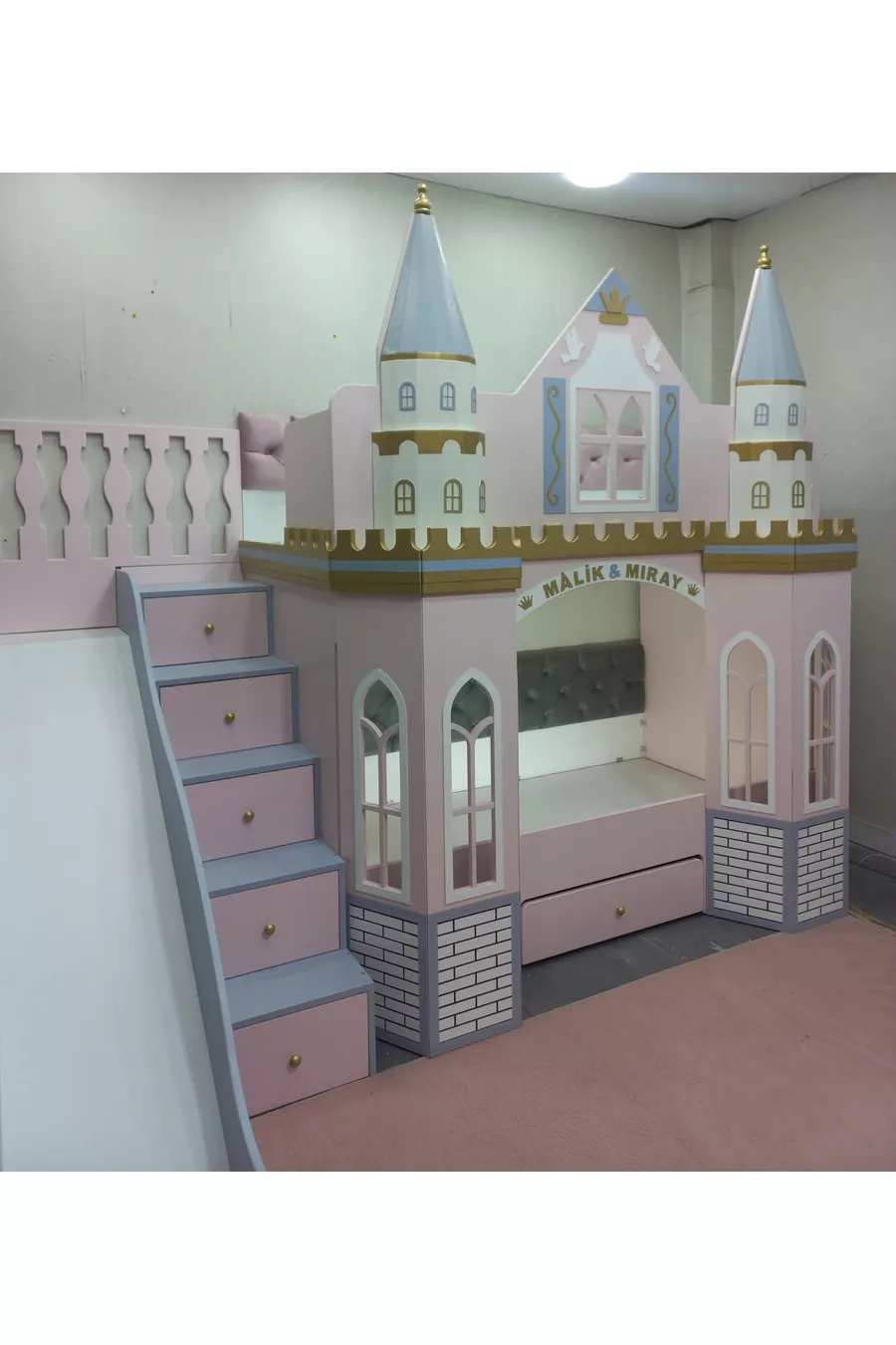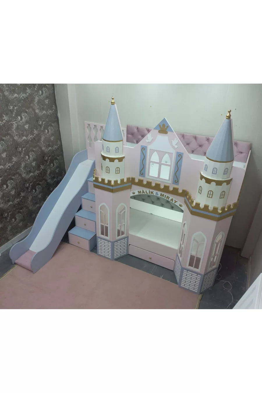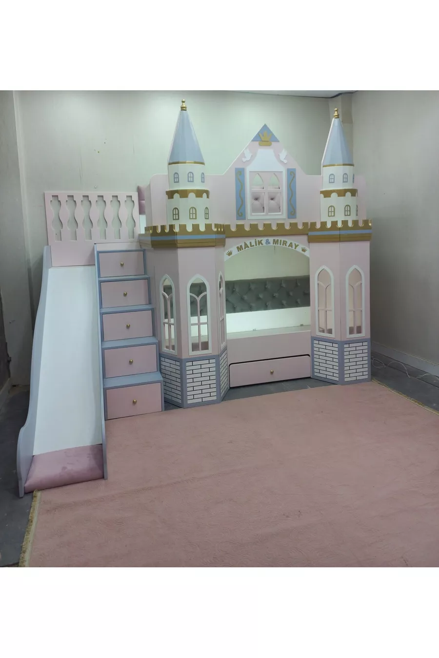 سرير بحجرة بطابقين مع زحلقة