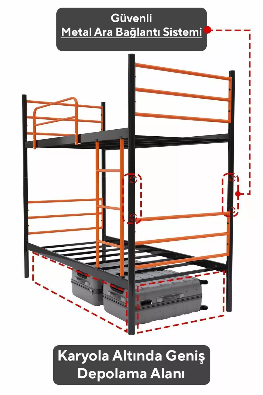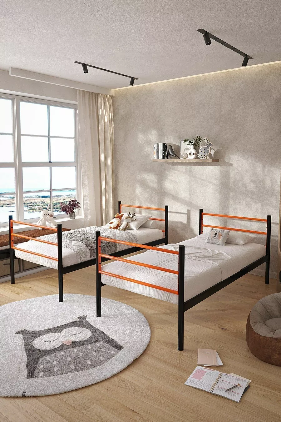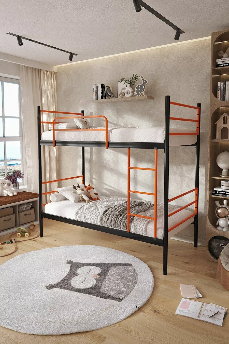 سرير بطابقين تريند مناسب للمرتبة باللون البرتقالي مع معدن قابل للفصل