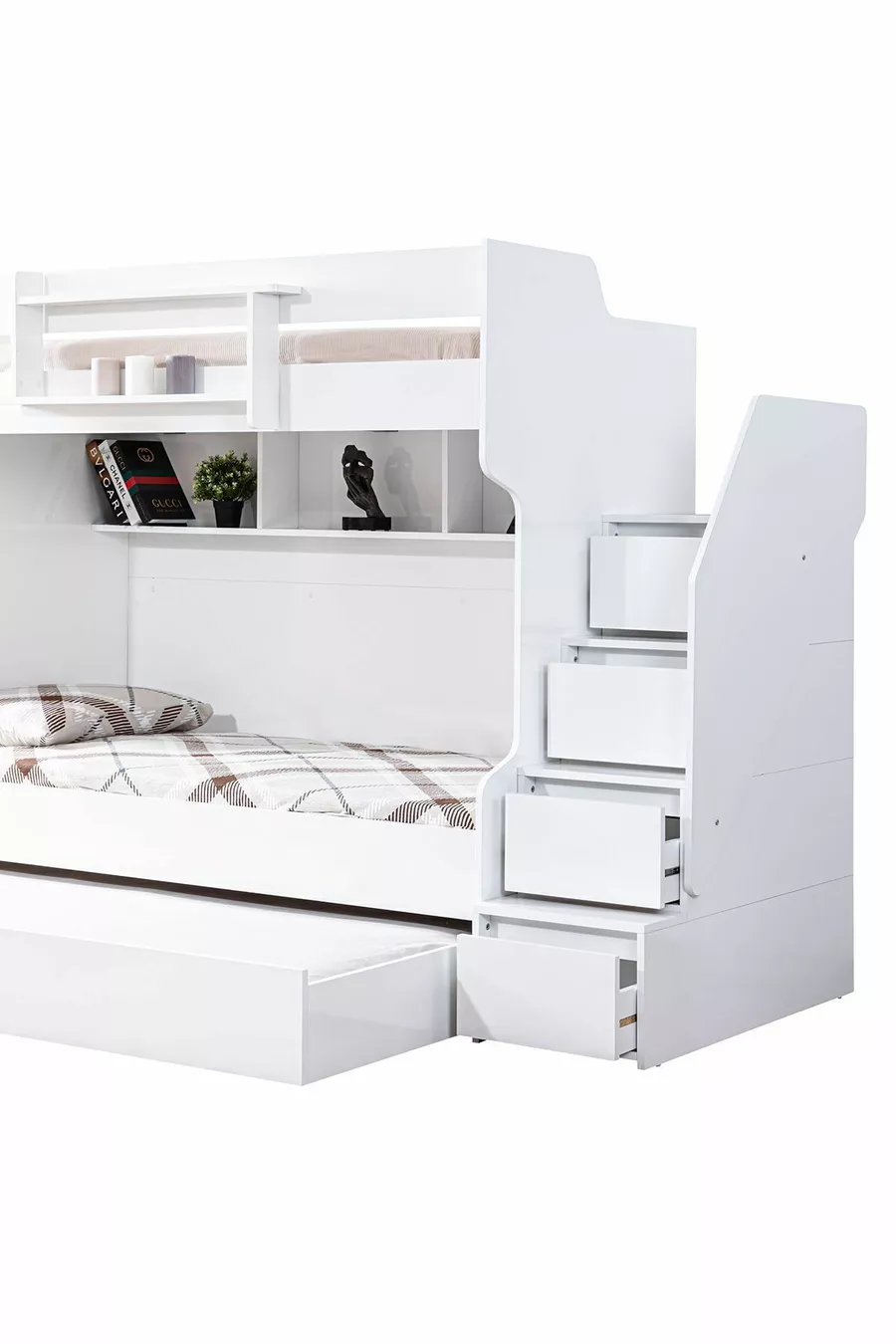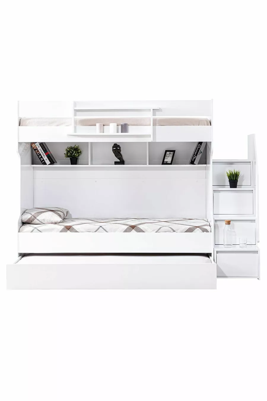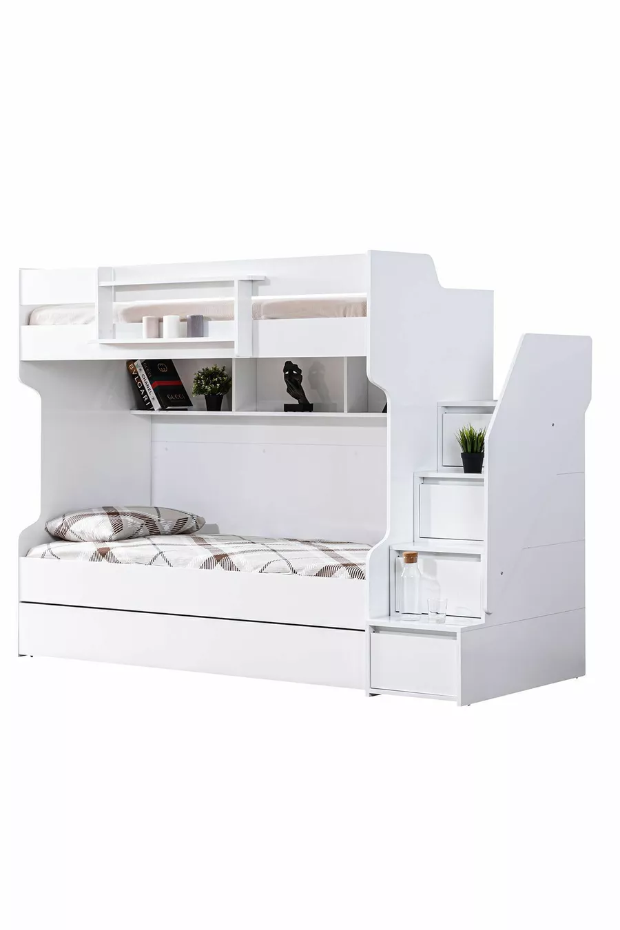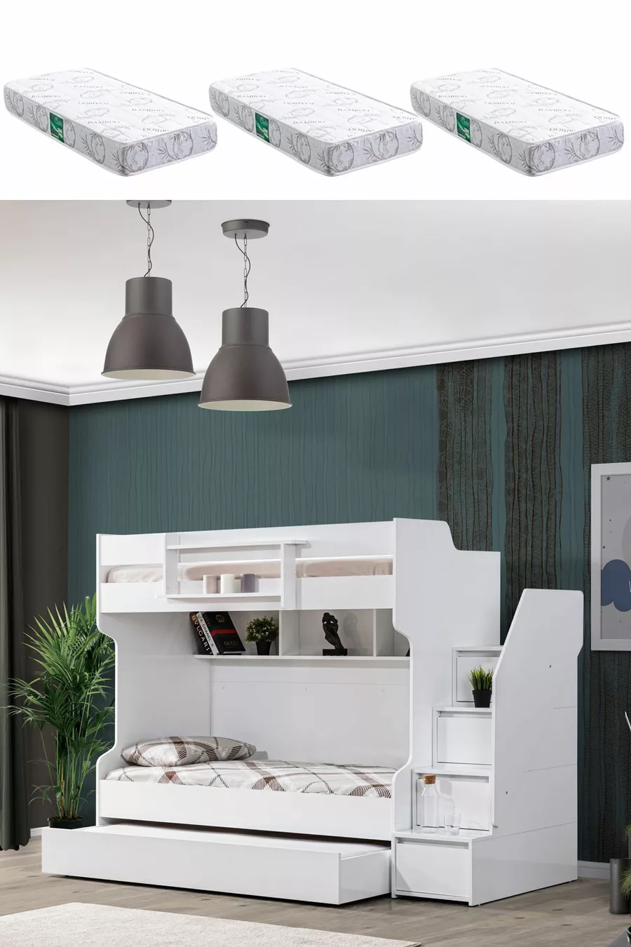 سرير بطابقين، سرير بطابقين شجاع مع سرير علوي - أبيض مع 3 فرشات مريحة