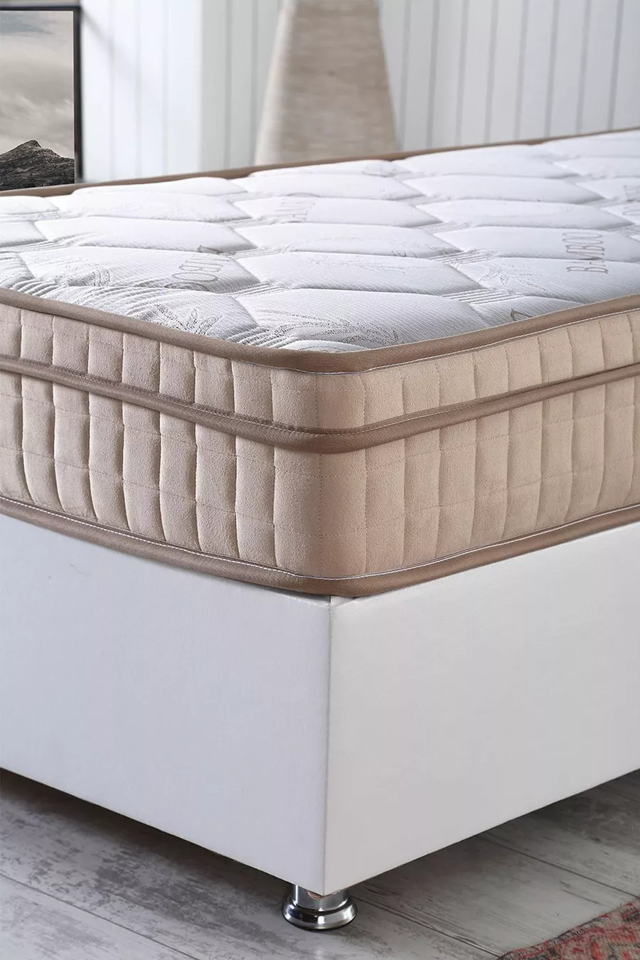 نوع السرير: نوابض اللون: قهوة حليبية مدة الضمان: سنتان الصلابة: متوسطة الصلابة المنشأ: تركيا الميزة: طويل اللون: أبيض