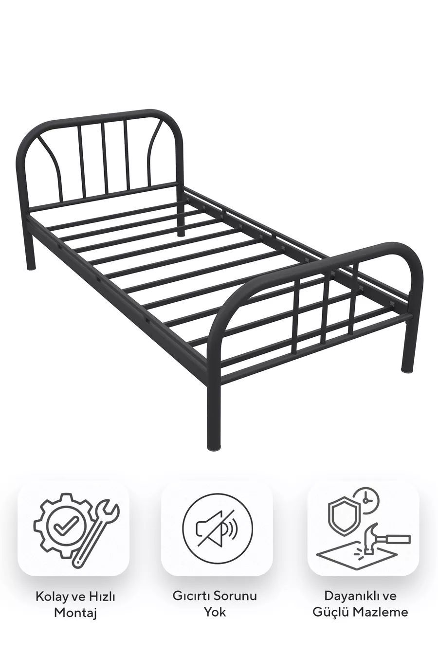 سرير حديدي ملكي أسود فردي