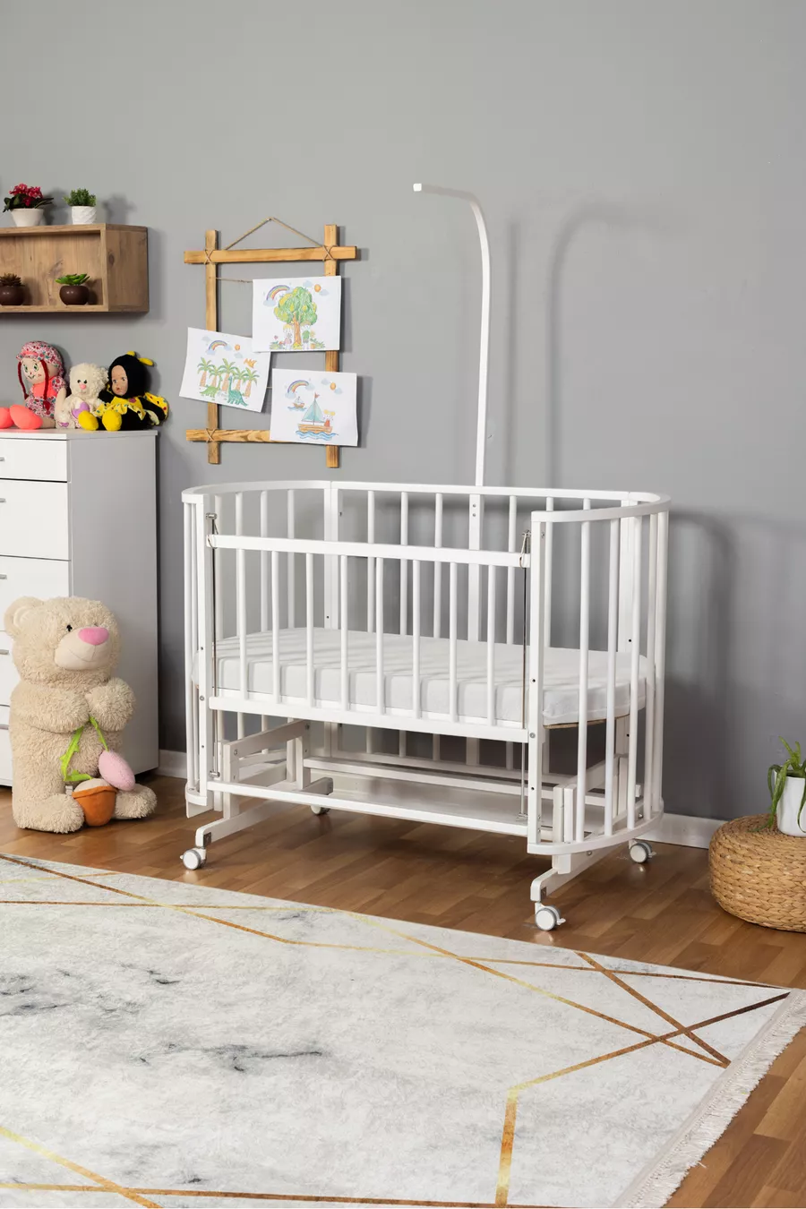 المادة: خشب اللون: أبيض سعة التحميل: 9 - 25 كغ مدة الضمان: سنتان الوظيفة: بعجلات نوع الاستخدام: بجانب الأم وظيفة التأرجح: نعم العرض: 125 سم أبعاد السرير الداخلي: 60 × 120 العمق: 65 سم الارتفاع: 100 الموضوع / النمط: إسكندنافي المنشأ: تركيا الميزة: قابل للتأرجح