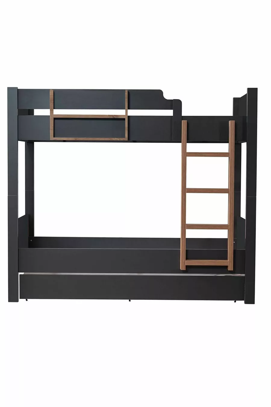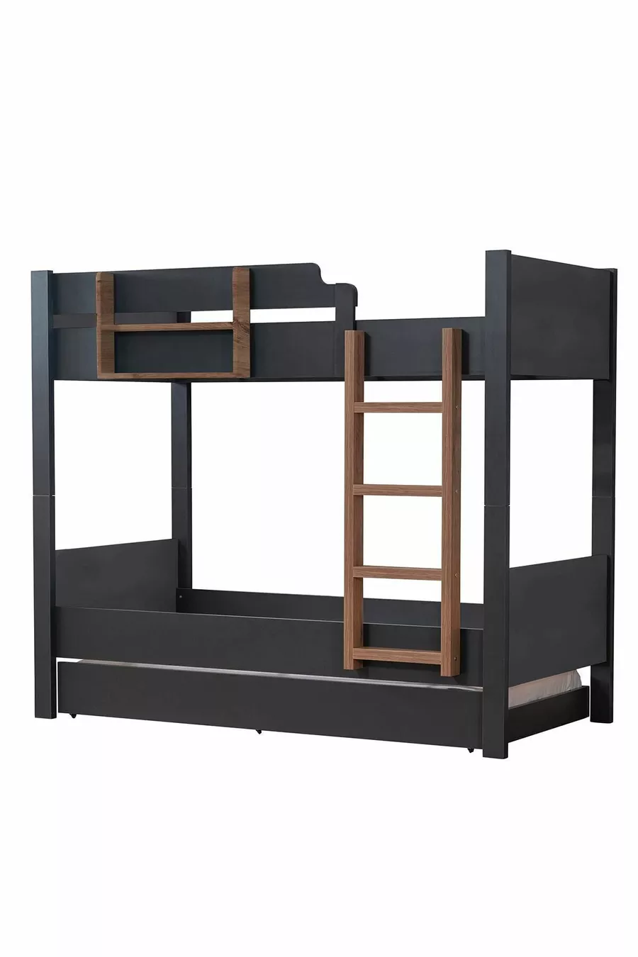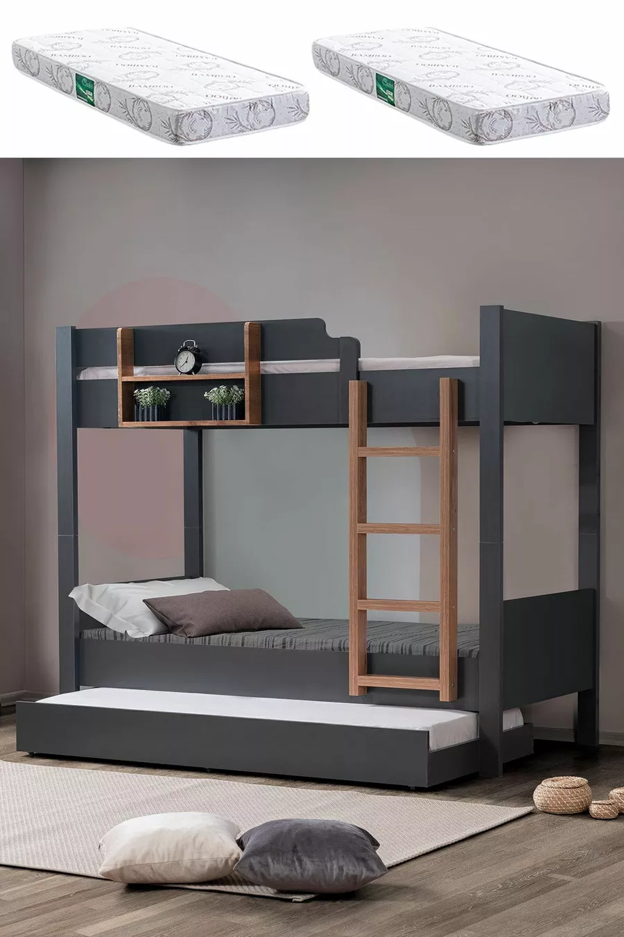 سرير طابقين، سرير قابل للفصل للأطفال من آسيا، أنثراسيت - جوز + مرتبتين كومفورت