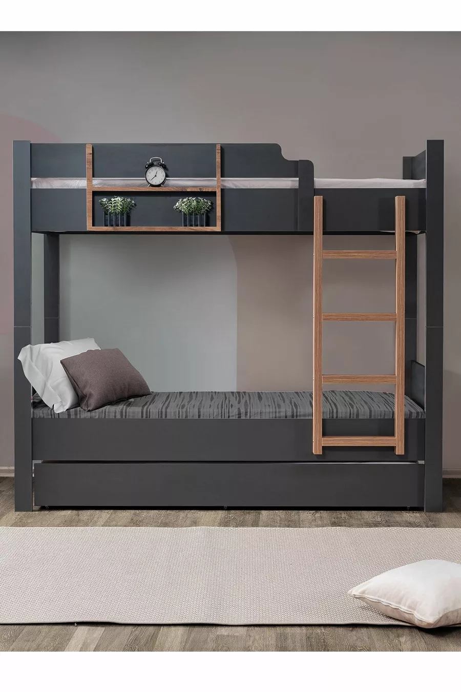 اللون: رمادي المادة: سونتلام الحجم: مفرد الأبعاد: 90 × 190 مدة الضمان: سنتان الطراز: حديث الموضوع / الطراز: اسكندنافي سرير مع سرير فرعي: موجود المنشأ: تركيا