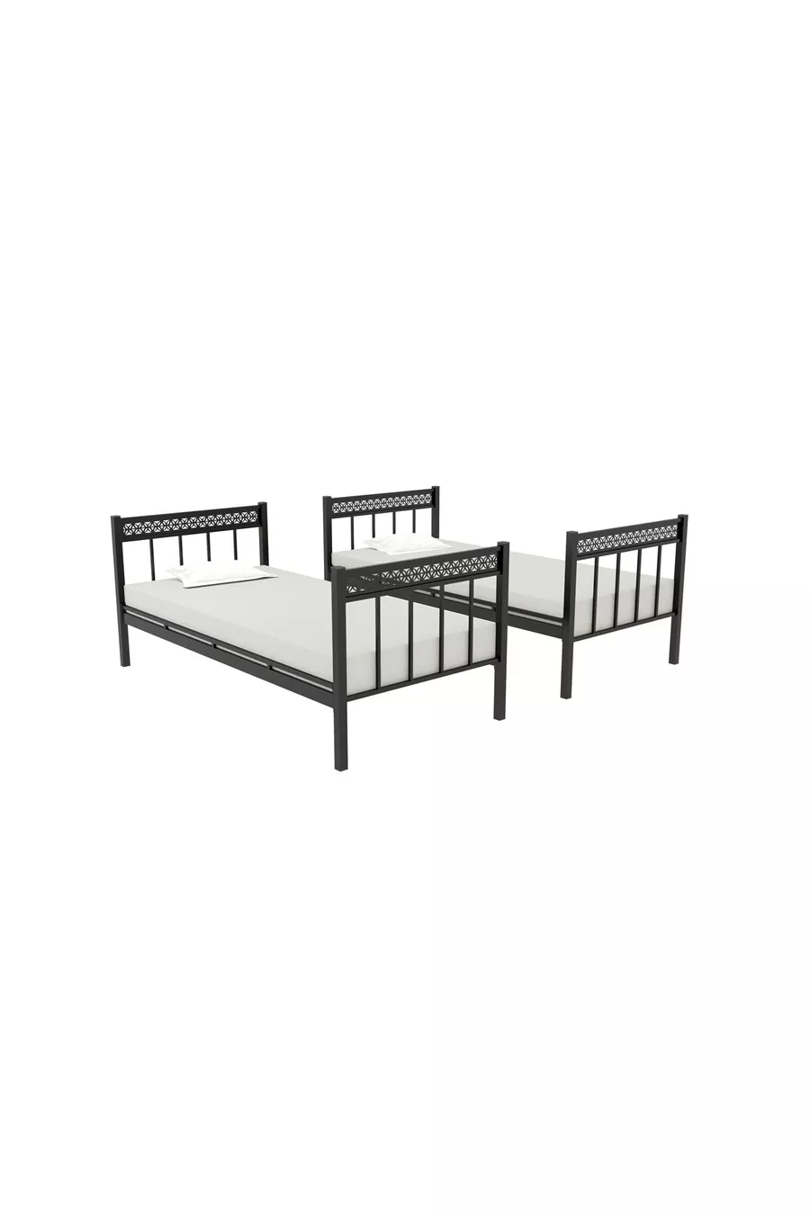 سرير طابقين من المعدن الأسود متوافق مع سرير موتيف