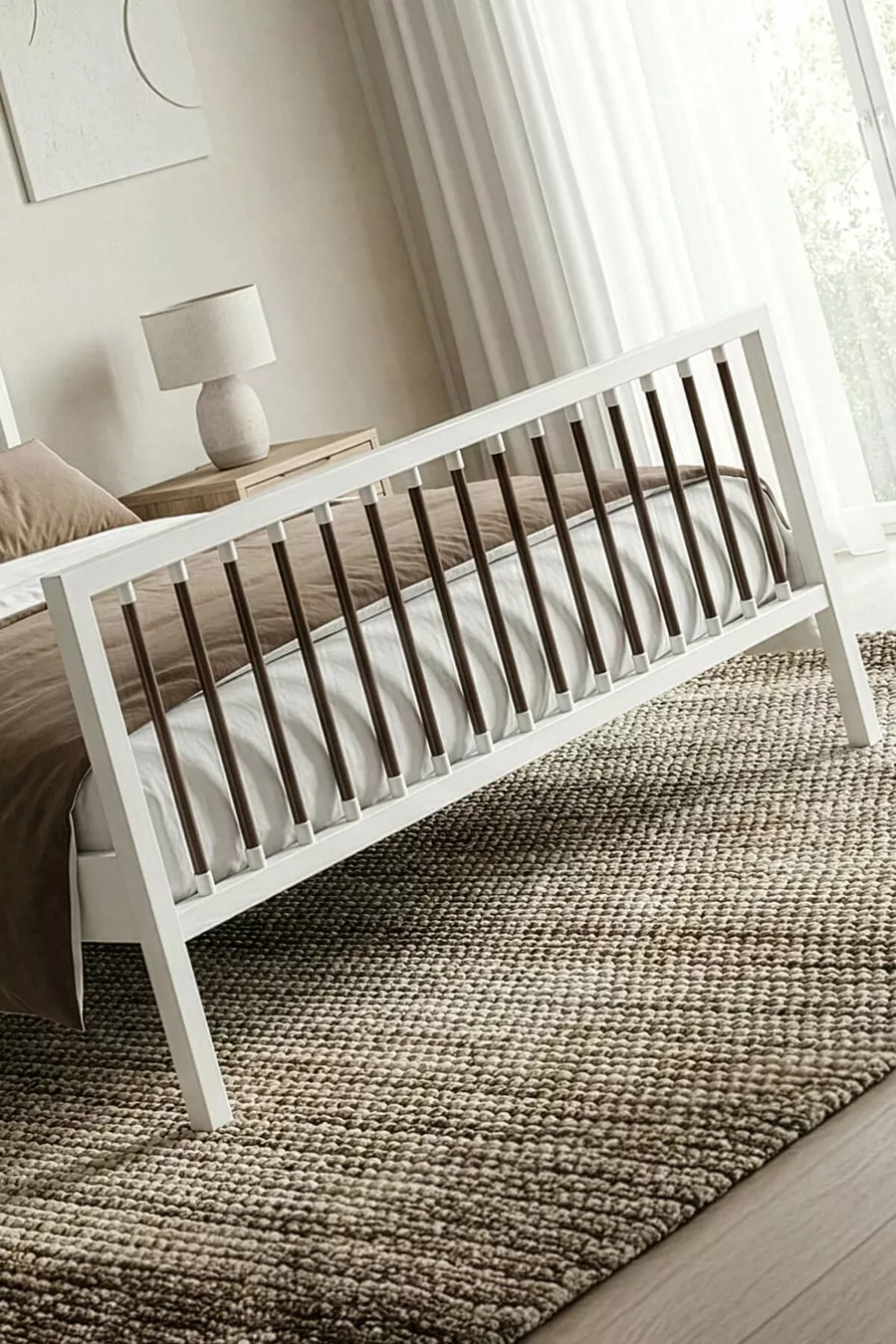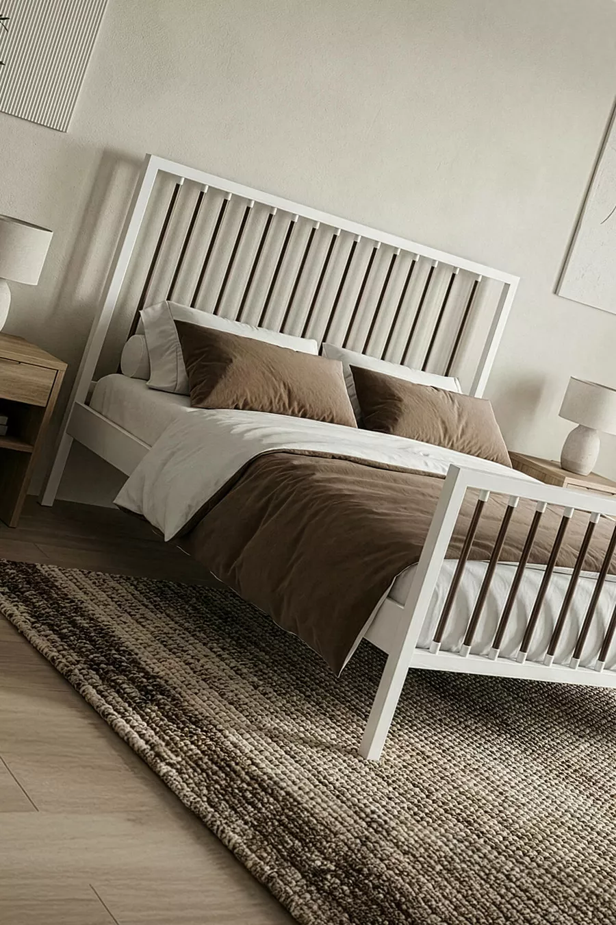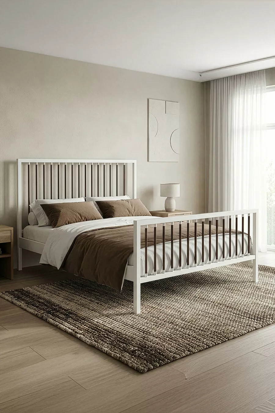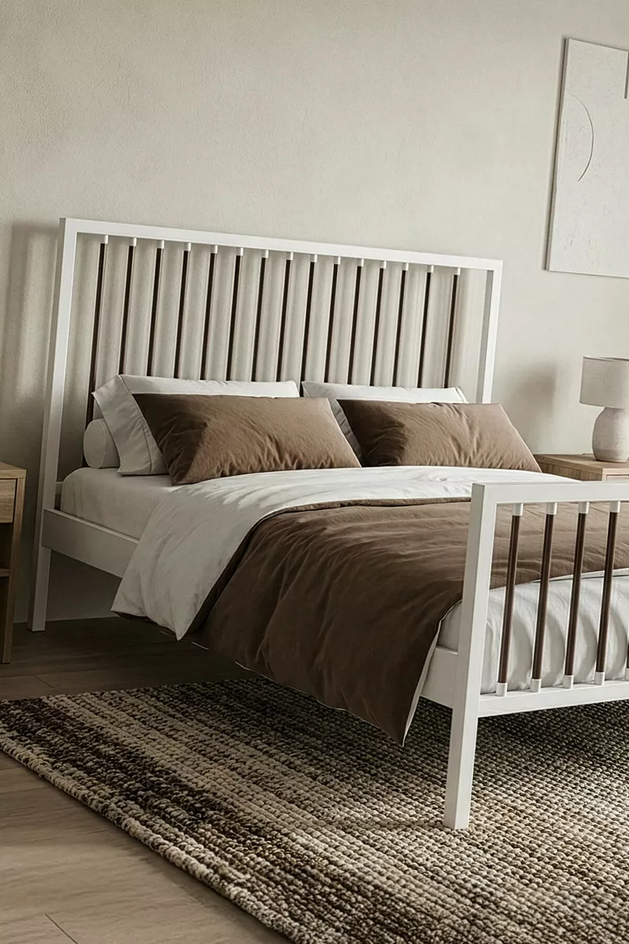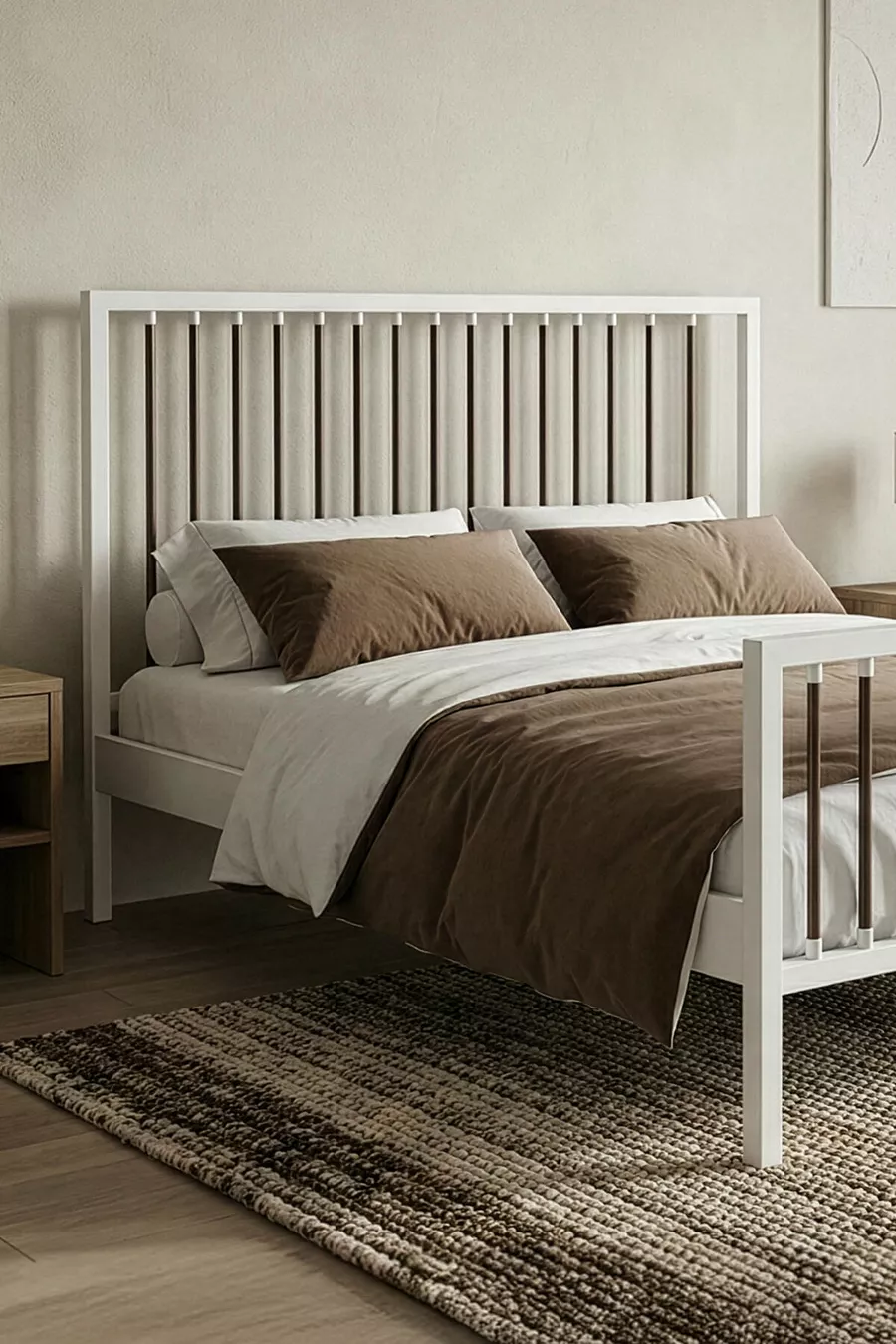 سرير معدني مزدوج بريز بفريم معدني مزخرف (أبيض-بني) (بسير خشبي)