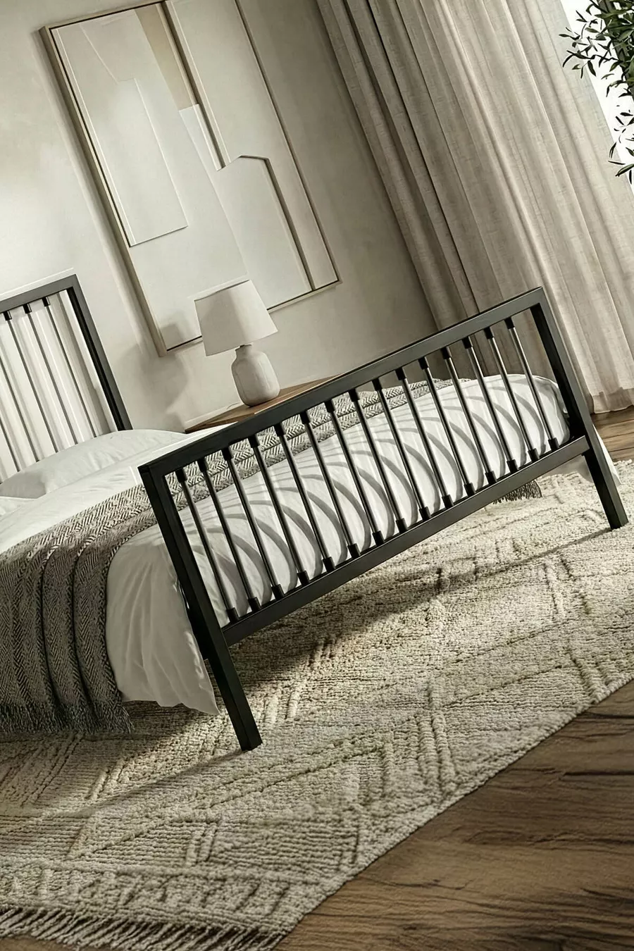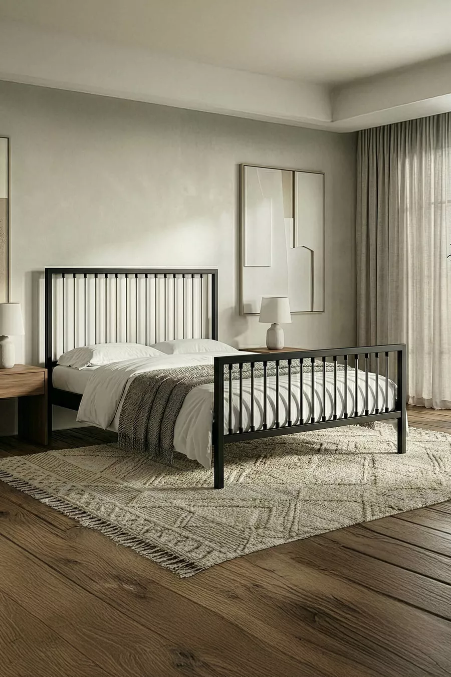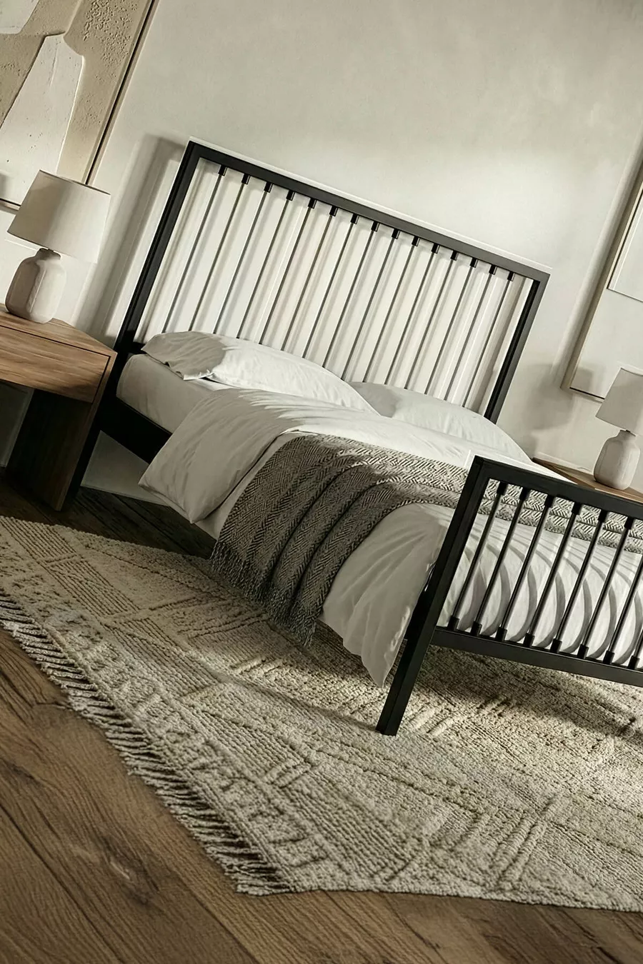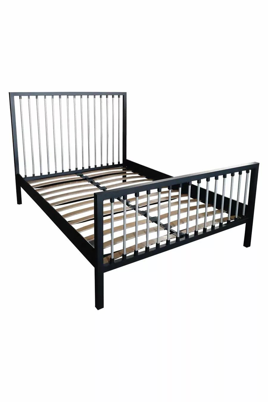 سرير معدني مزدوج بريز (أسود-رمادي) (بقوائم خشبية)