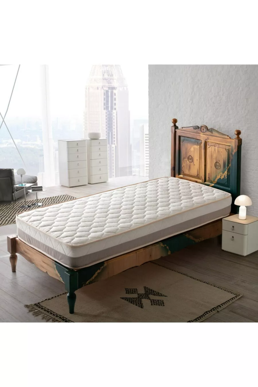 نوع السرير: نابض مدة الضمان: سنتان المنشأ: تركيا اللون: أبيض