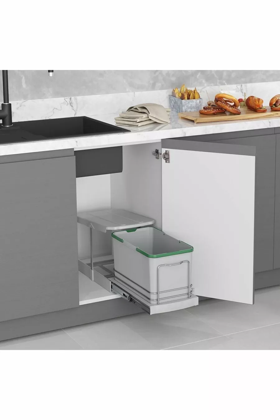 سلة قمامة منزلقة داخل خزانة تحت الطاولة مزودة بمسار تلسكوبي، سعة لتر، ضمان سنتان