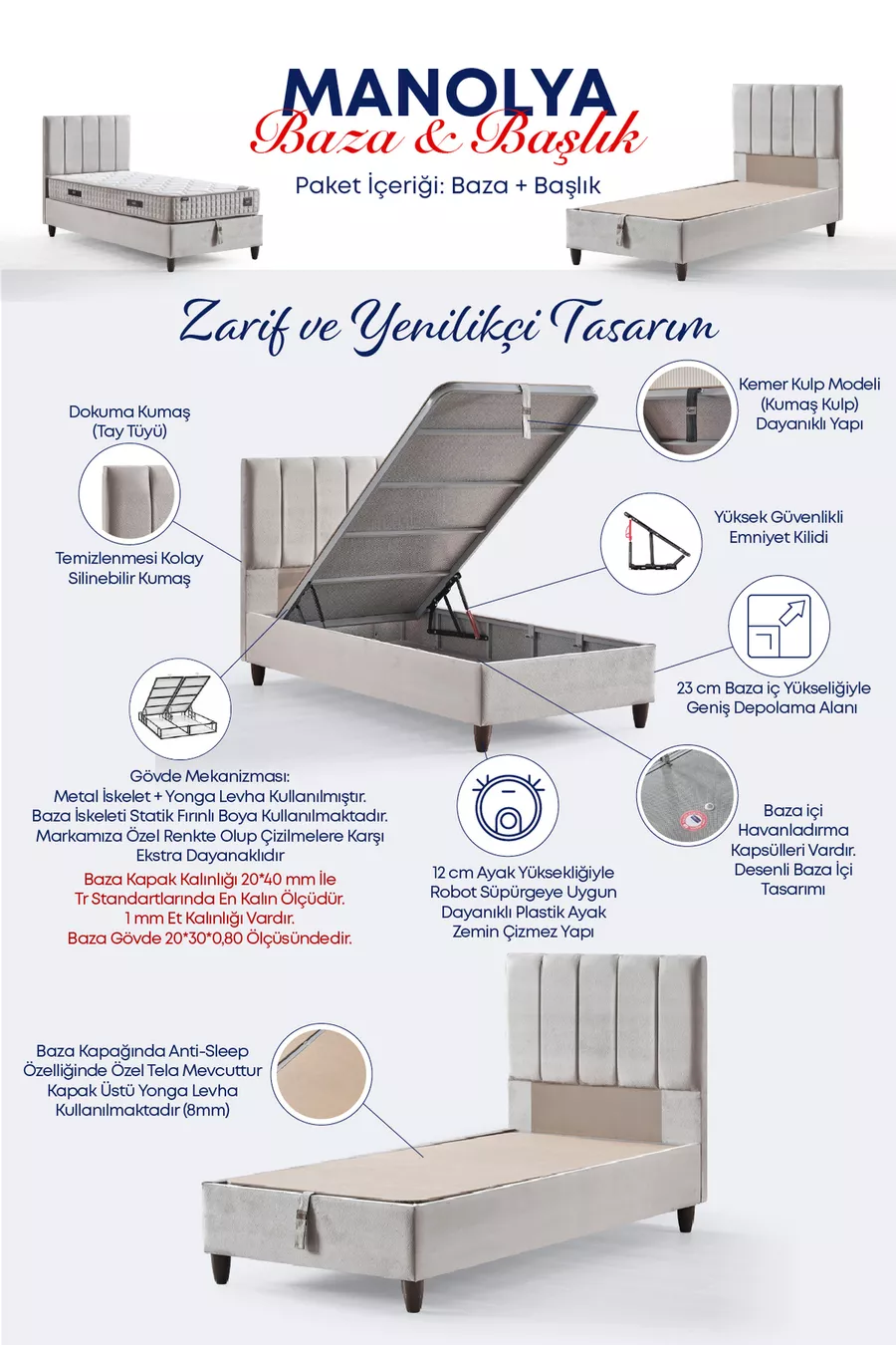 الحجم: فردي المادة: معدن مدة الضمان: سنتان نوع الطقم: قاعدة + رأس سرير + فرشة اللون: كريم الأسلوب: حديث الموضوع / النمط: حديث المنشأ: تركيا الميزة: مع صندوق تخزين