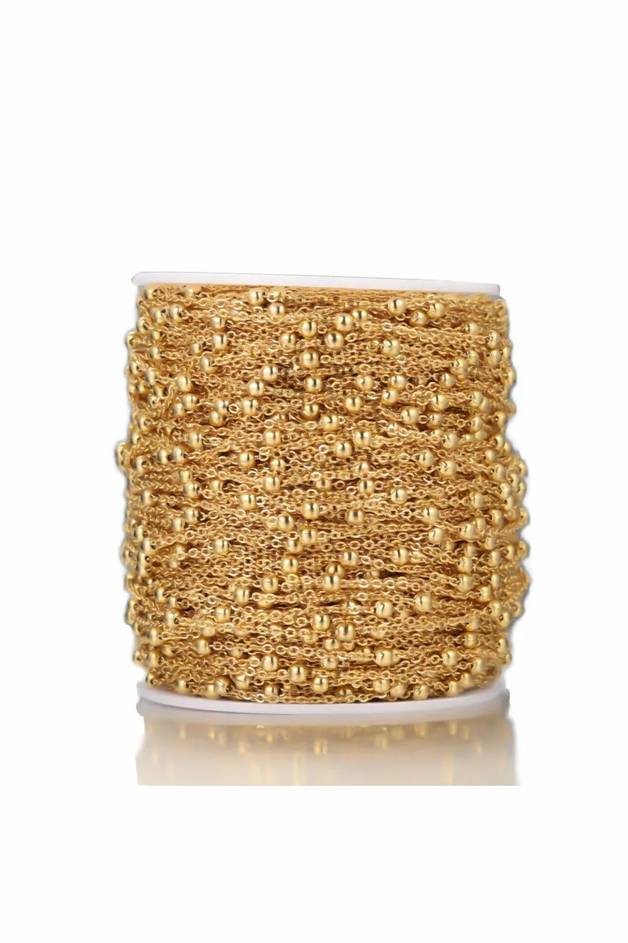 سلسلة مطلية بالذهب مع تفاصيل كرات من الستانلس ستيل لصناعة المجوهرات - طول 2 متر – خرز