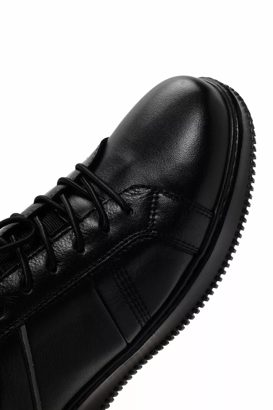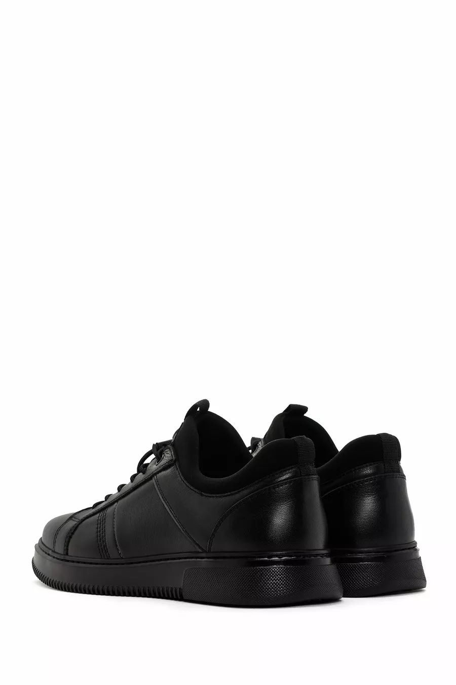سنيكرز جلد بأربطة سوداء للرجال