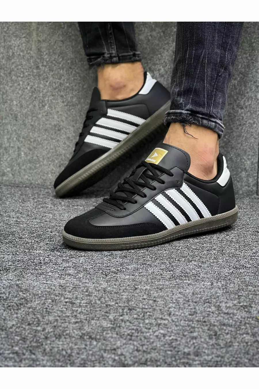 سنيكرز رجالي أسود أبيض مسطح نعل كاجوال