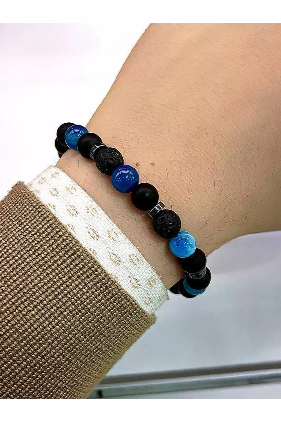 سوار حظي طبيعي للجنسين بثلاث أحجار أزوريت، هيمايت، كريستال كوارتز