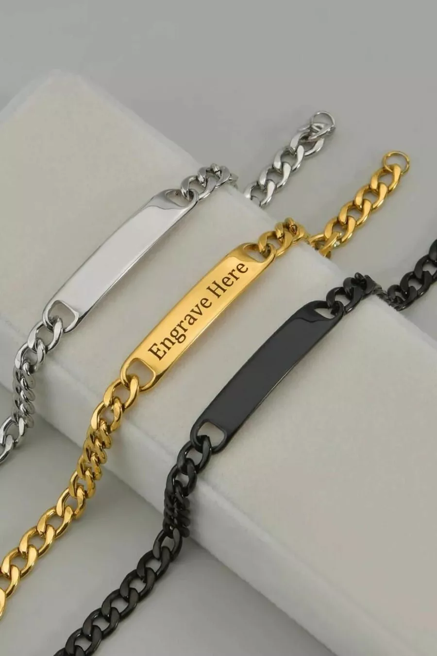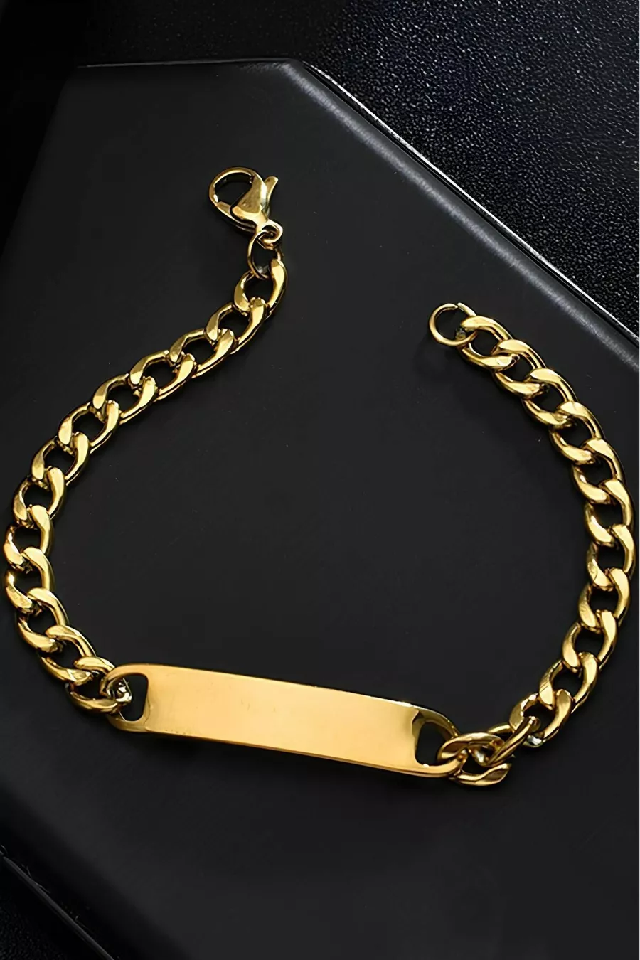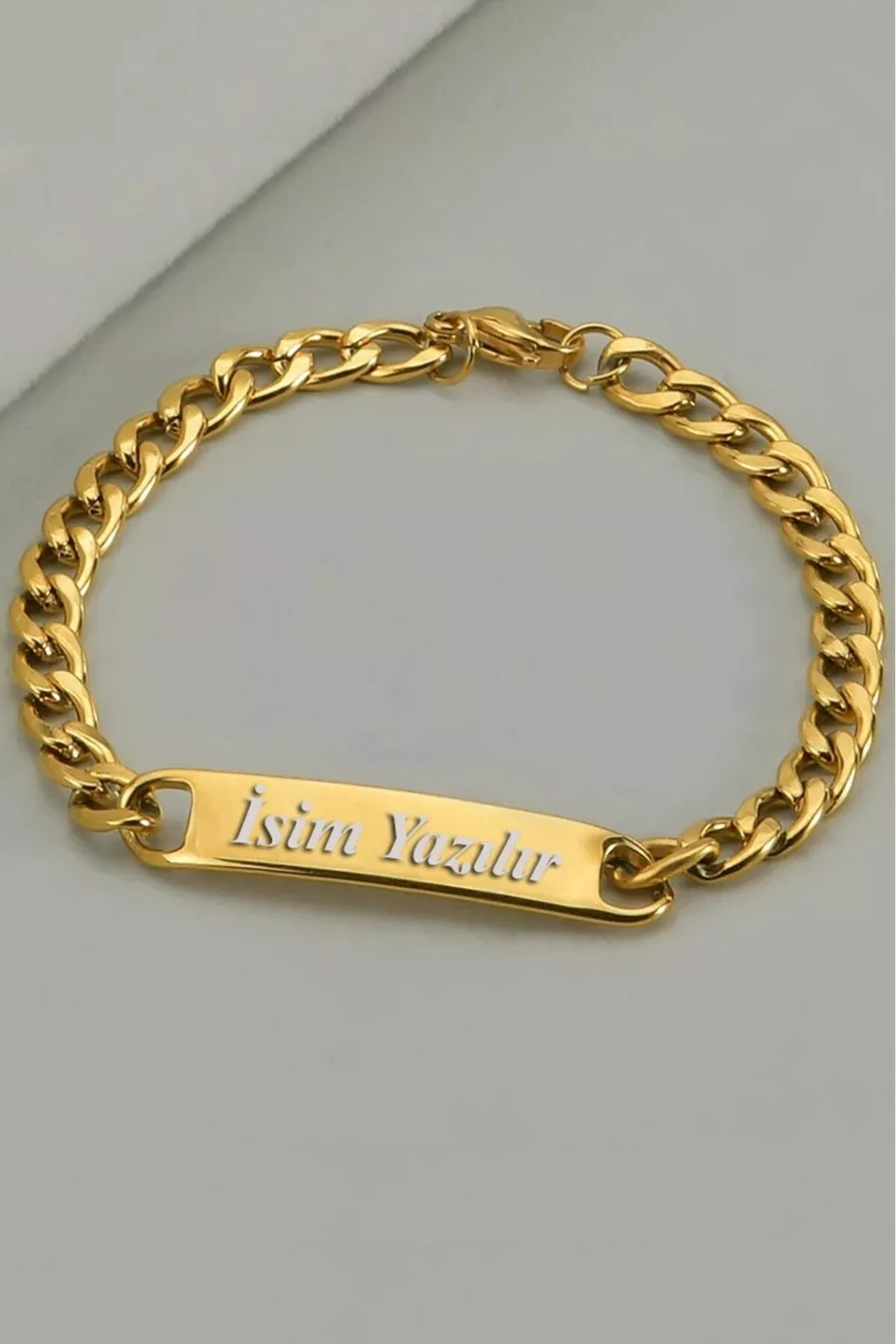 سوار رجالي من الفولاذ مطلي بالذهب مع اسم شخصي