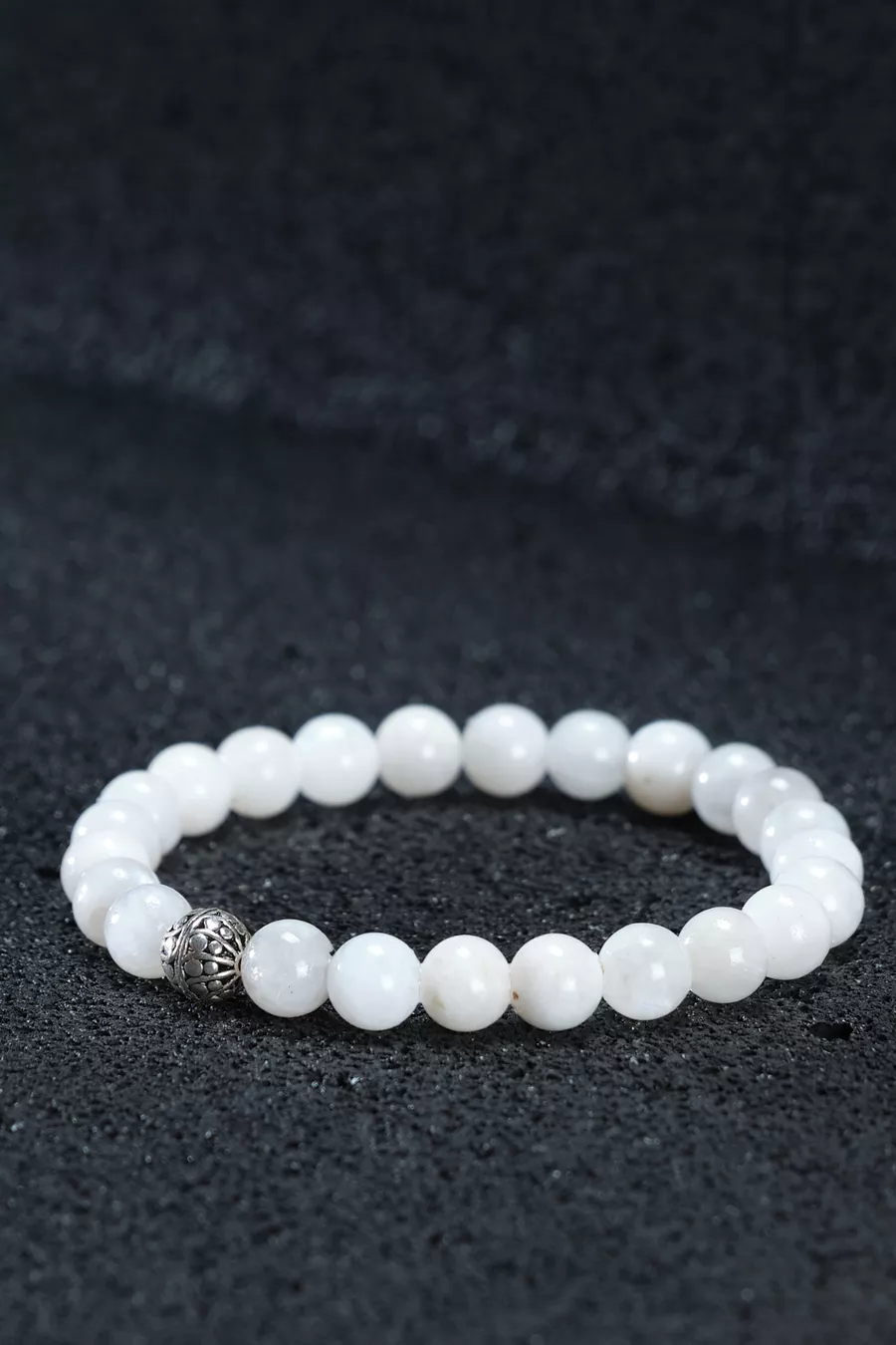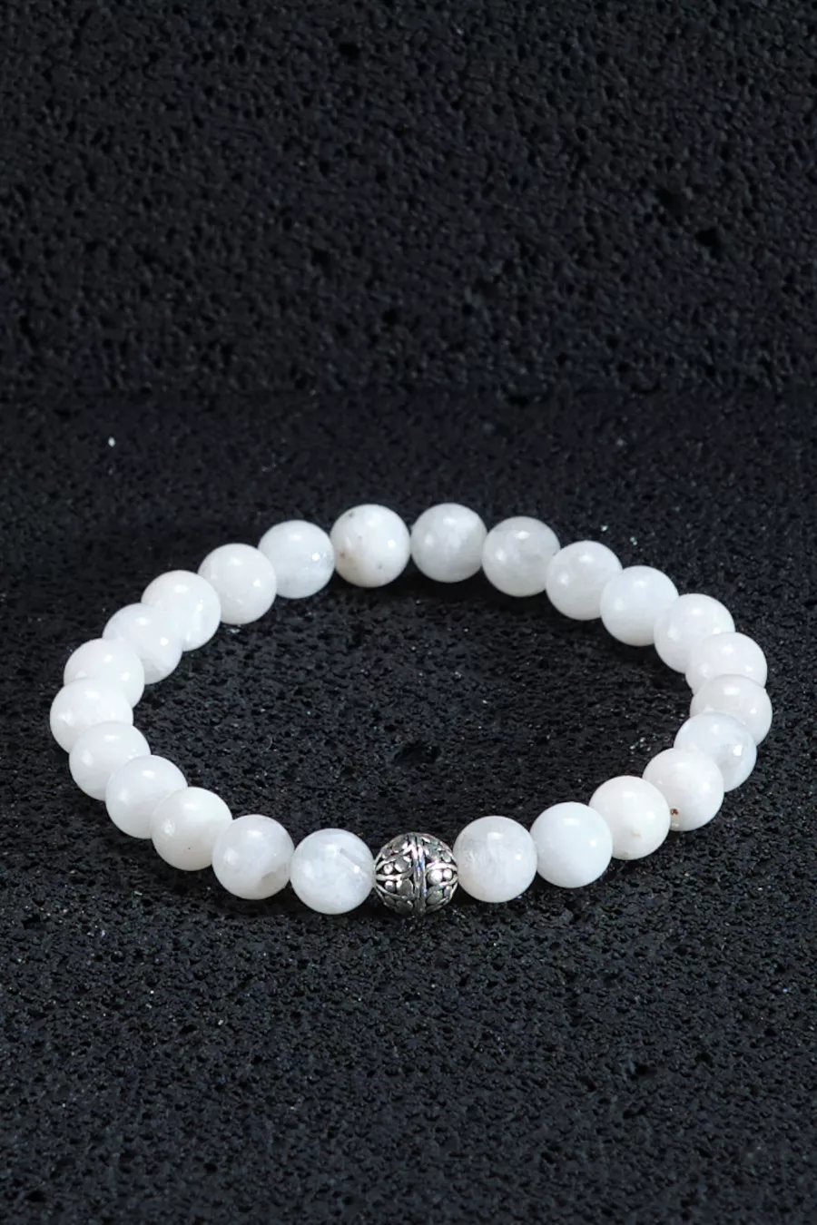 سوار نسائي من حجر طبيعي معتمد - سوار صحة المرأة - حجر القمر مع قطعة فضية