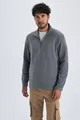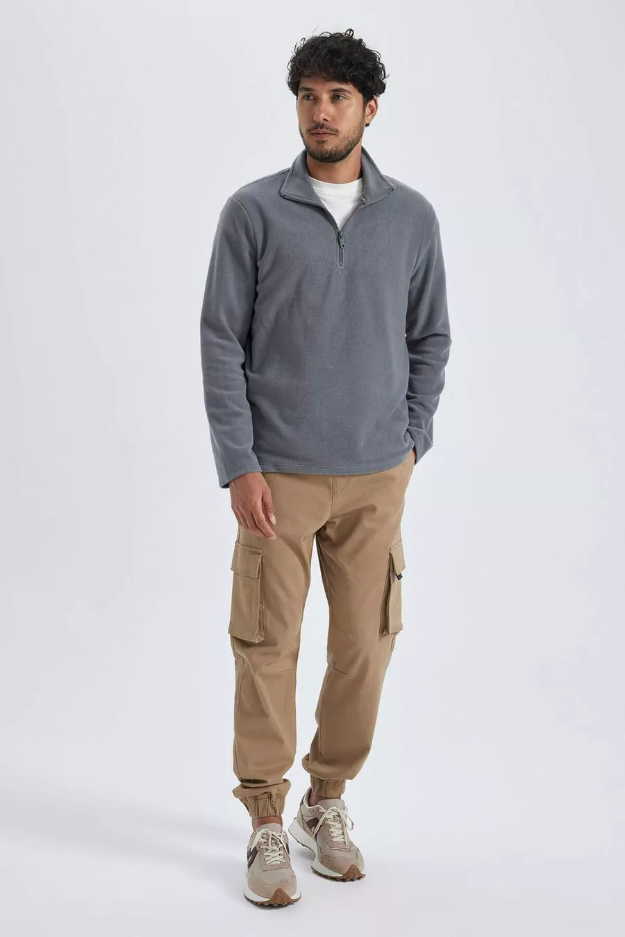 سويت شيرت قطبي بسحّاب جزئي وياقة عالية، بقصة مريحة