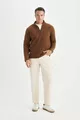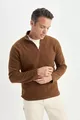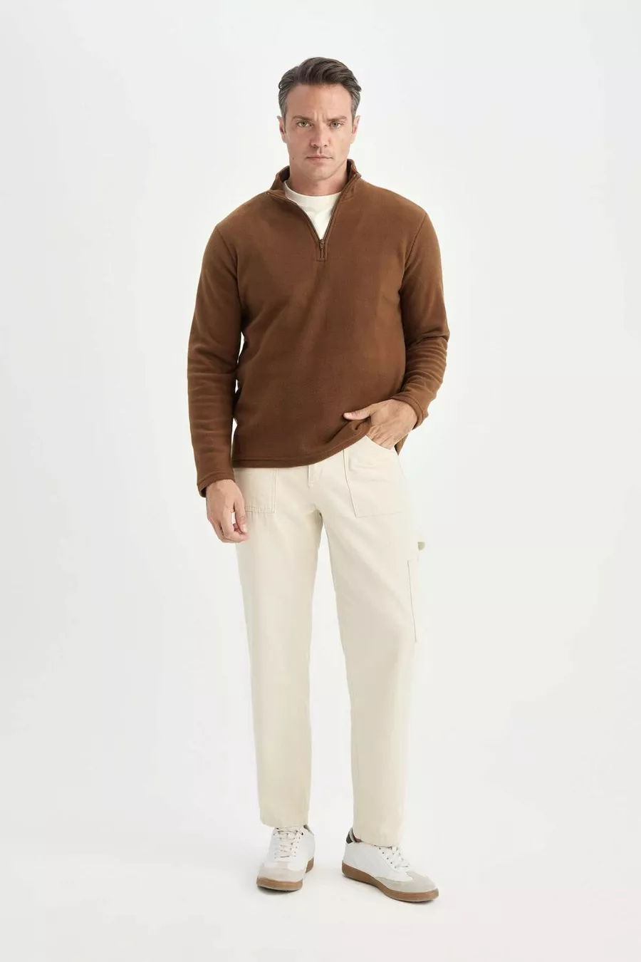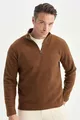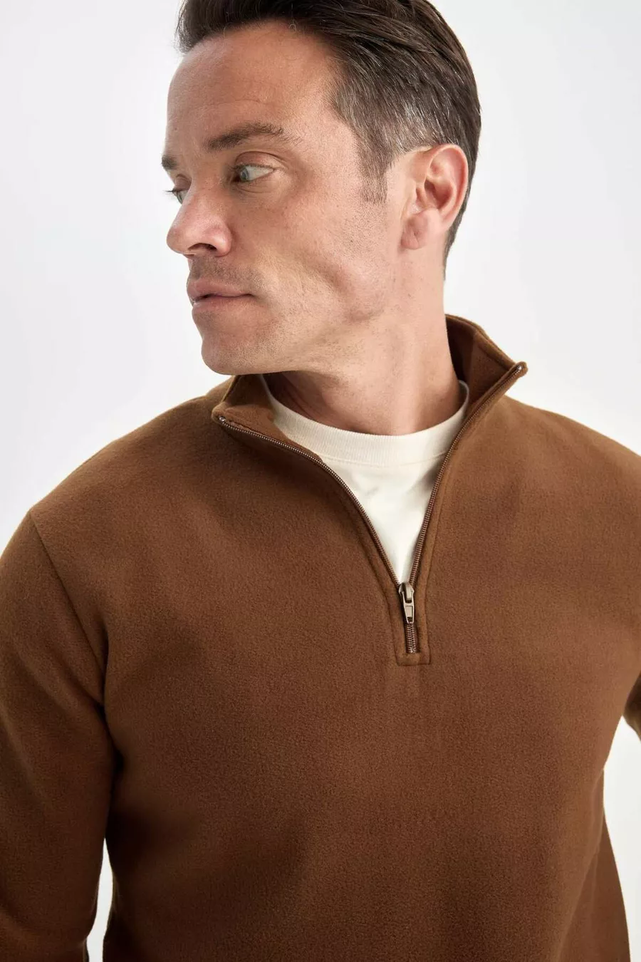 سويت شيرت بولار بسحّاب وياقة عالية، مقاس عادي، بلون زيتي، مقاوم للبرد ولا يترك وبر AZNS