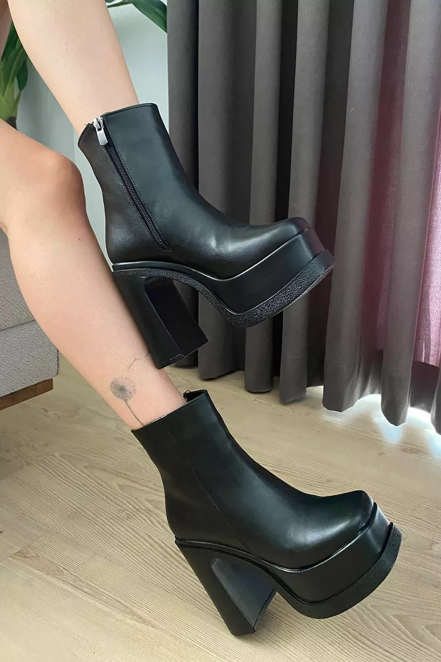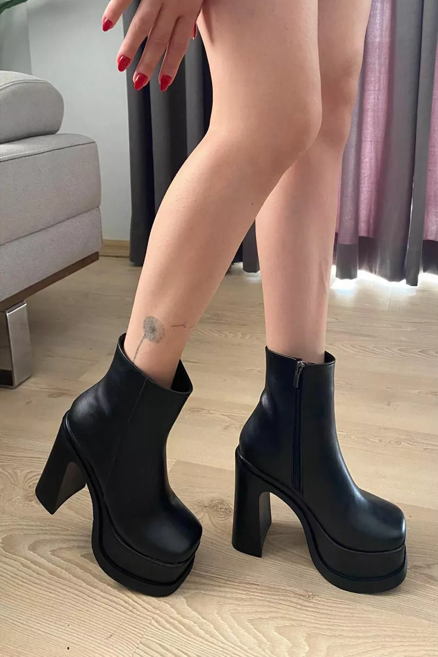سيدني للسيدات الجلد الأسود سنتيمتر منصة الكعب الأحذية بسحاب