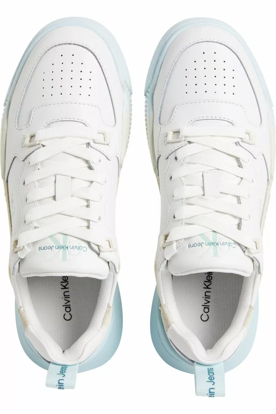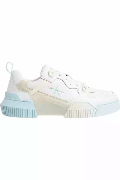 شعار العلامة التجارية للمرأة أنيق المظهر جلد عارضة حذاء رياضي أبيض