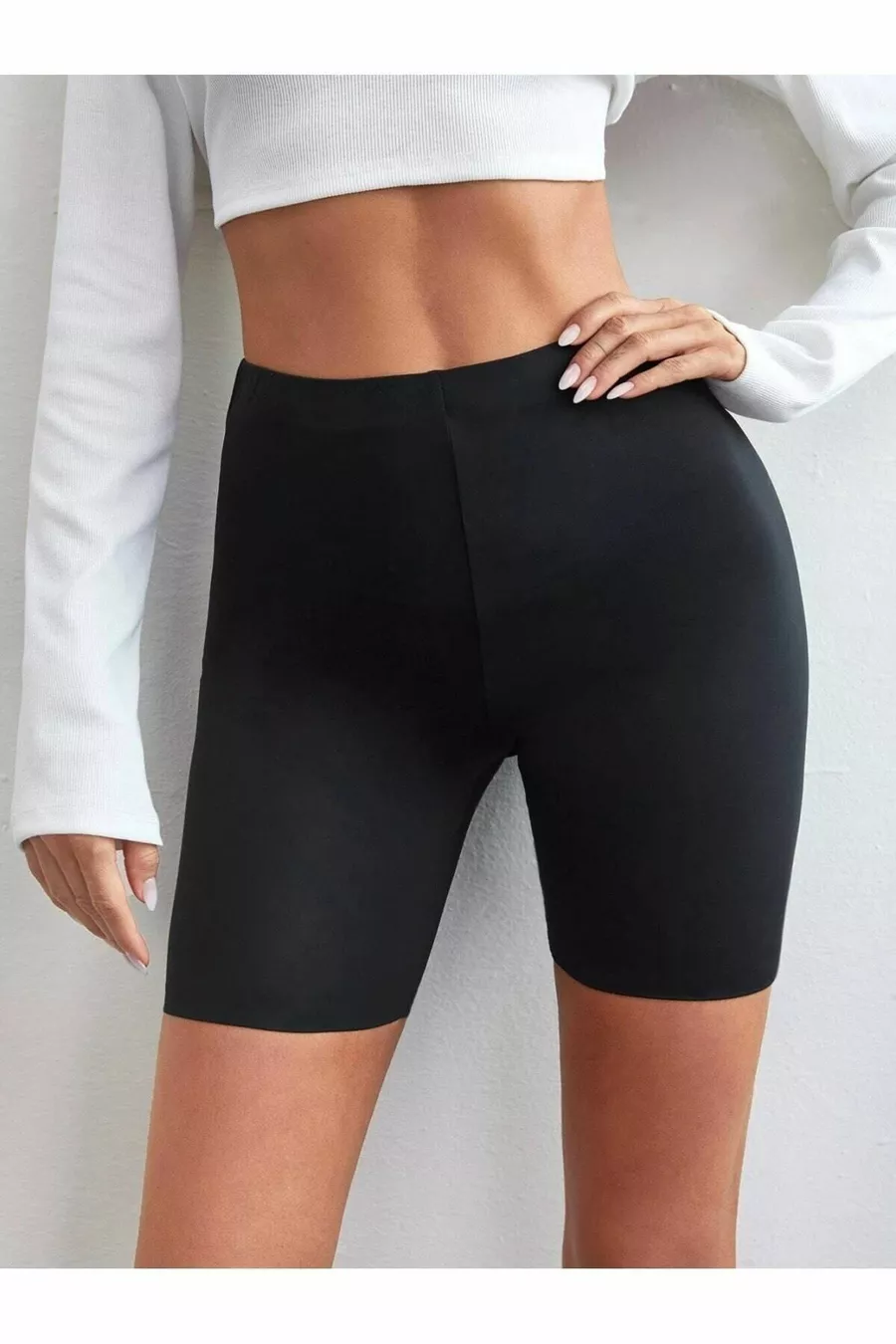 شورت بورفي موديل خصر عالي بحزام سيليكون لا يترك آثاراً ولا يظهر من الداخل مقطوع بالليزر باللون الأسود