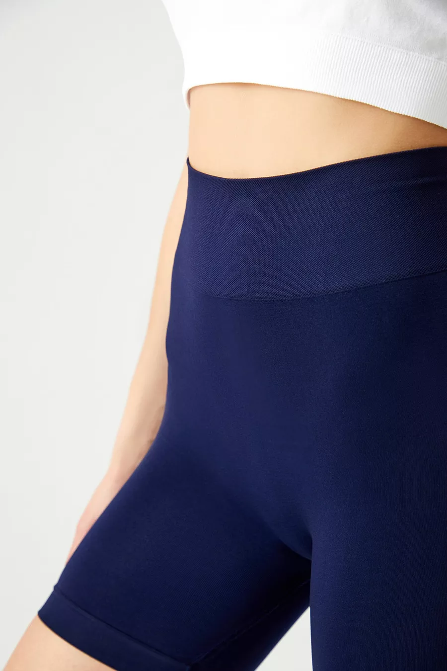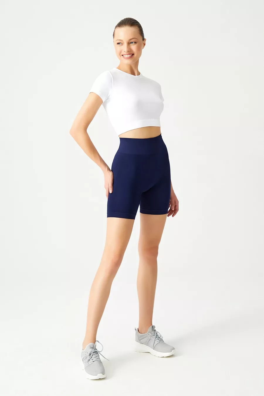 شورت رياضي قصير عالي الخصر بدون خياطة بلون كحلي