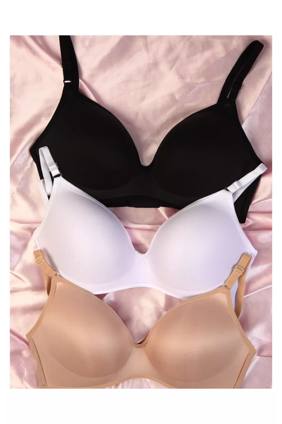 صدرية لوتس بدون حشوة ومشد بدون سلك باللون الأسود والأبيض والبيج