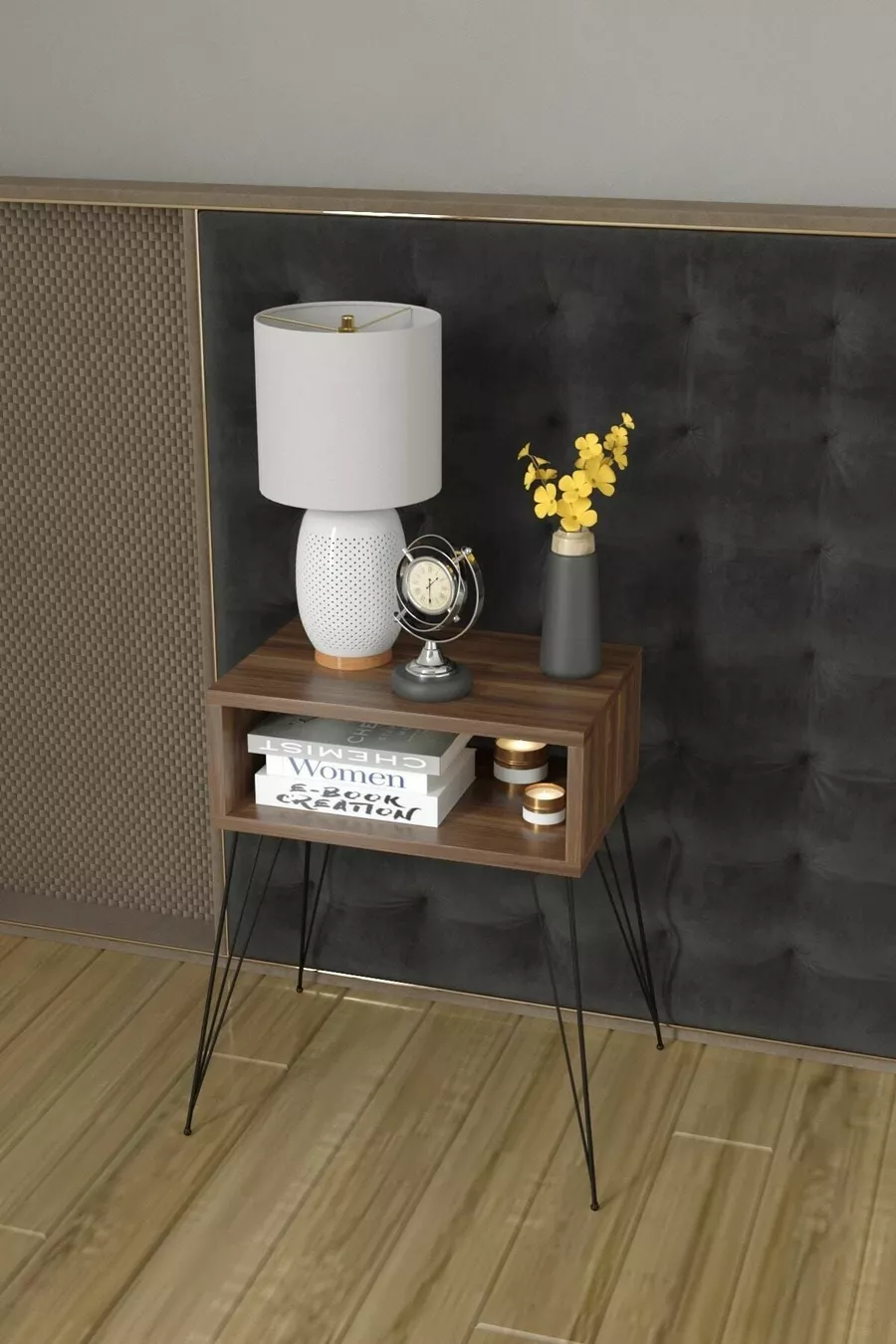 المادة: سندالام اللون: بني عدد الأدراج: رف مفتوح الارتفاع: 59 سم العرض: 45 سم العمق: 30 سم الميزة: ذو أرجل