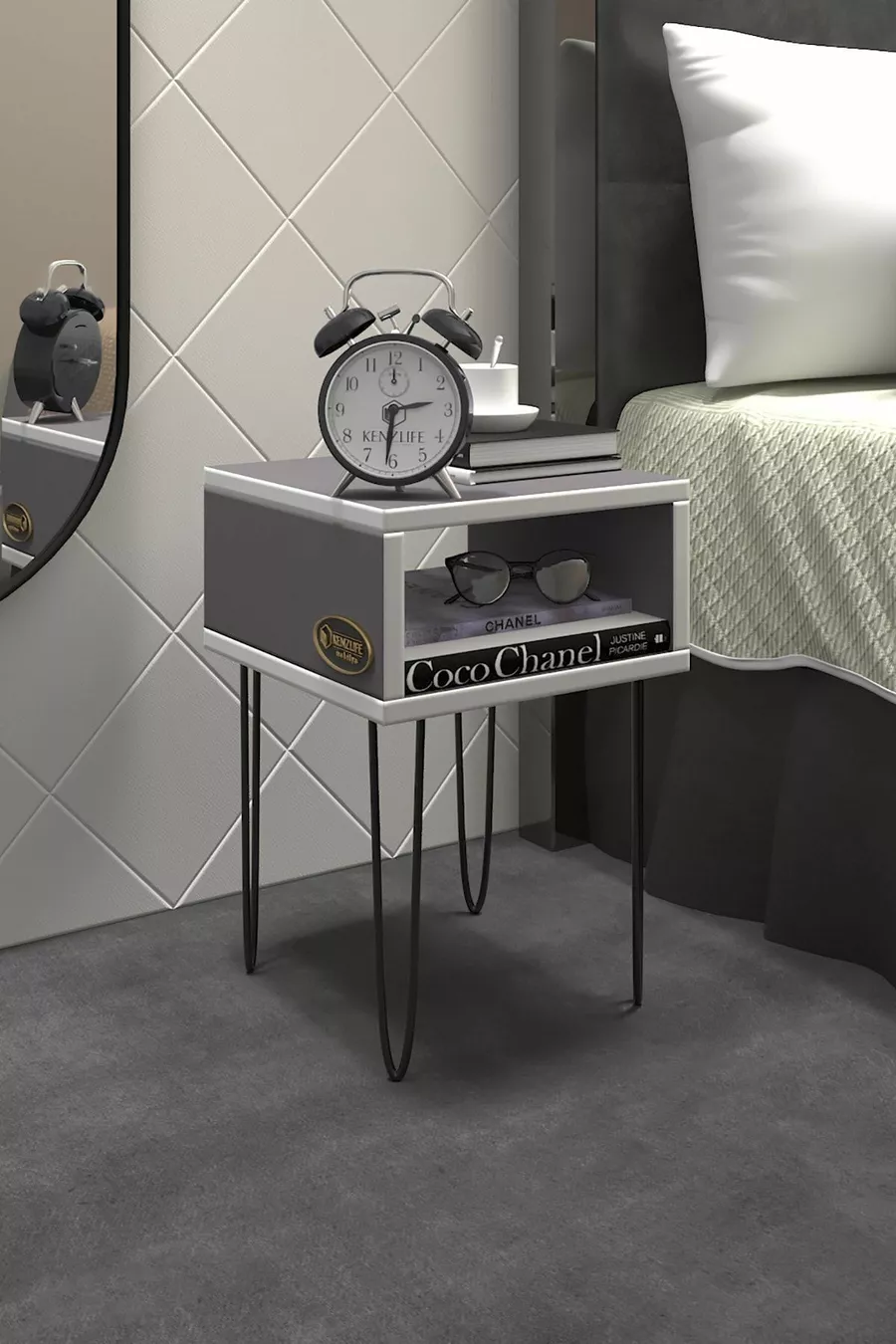 طاولة جانبية أورتيزي الرمادية ** طاولة جانبية معدنية الأرجل متوسطة الحجم (M)