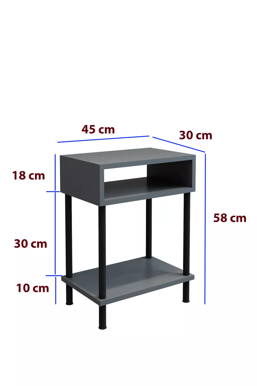 المادة: صنتالام اللون: رمادي مدة الضمان: سنة واحدة عدد الأدراج: رف مفتوح الارتفاع: 58 سم العرض: 45 سم العمق: 35 سم الأسلوب: حديث الموضوع / الأسلوب: حديث المنشأ: تركيا الميزة: مع رفوف