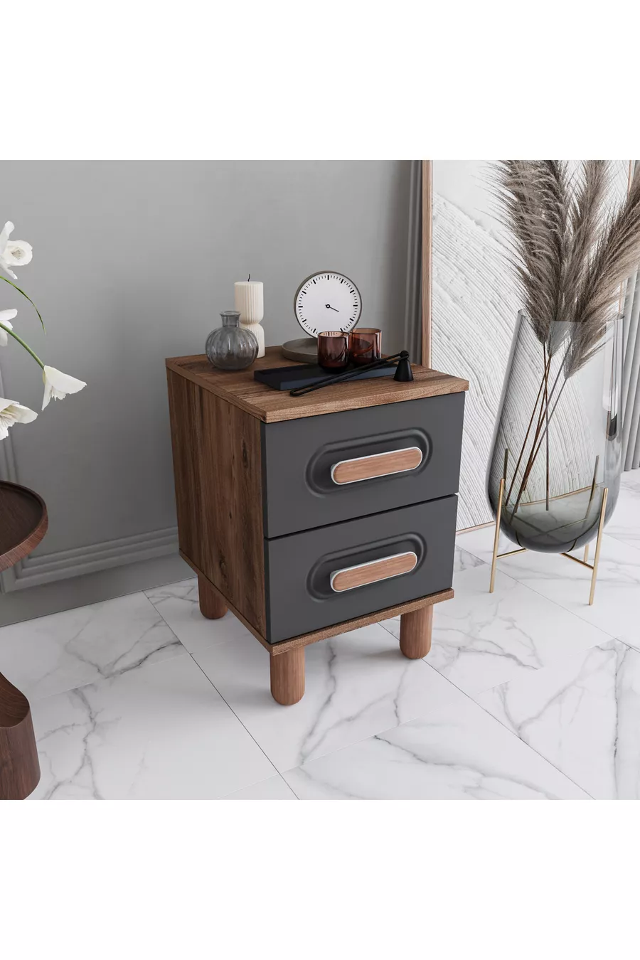 المادة: MDF اللون: رمادي فترة الضمان: سنتان عدد الأدراج: 2 الارتفاع: 58 سم العرض: 40 سم العمق: 45 سم الطراز: اسكندنافي الموضوع / الطراز: حديث المنشأ: تركيا الميزة: ذو أرجل