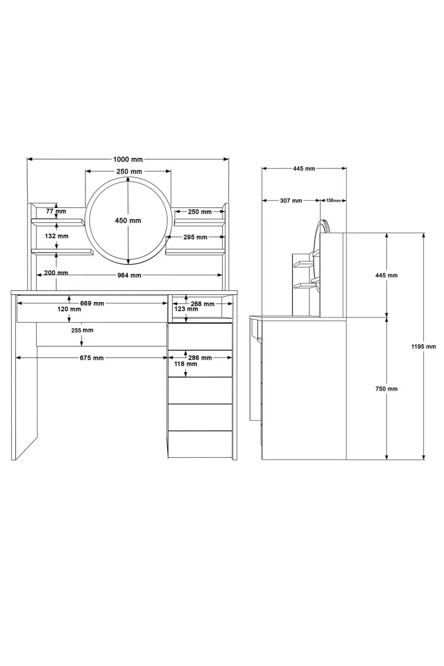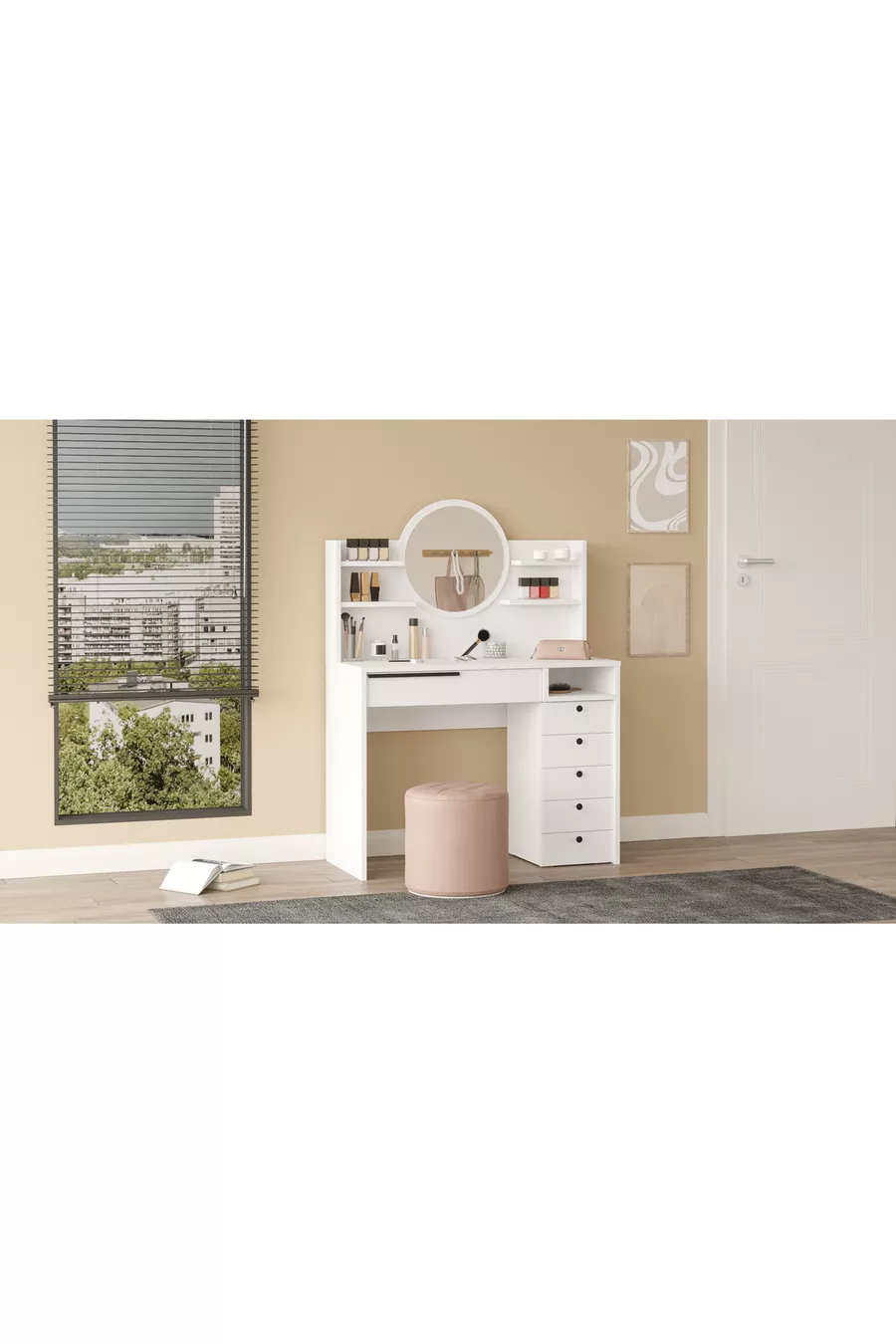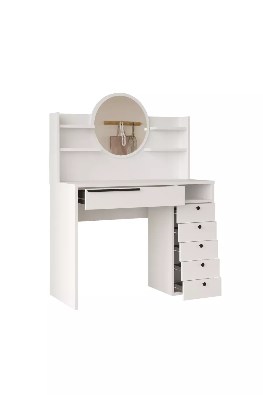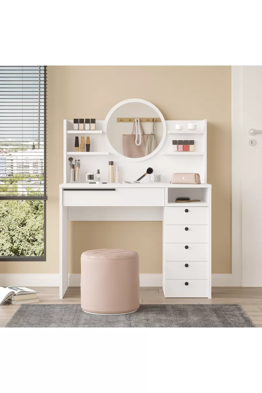طاولة مكياج أوشن مع مرآة وخزانة أدراج ورف أبيض