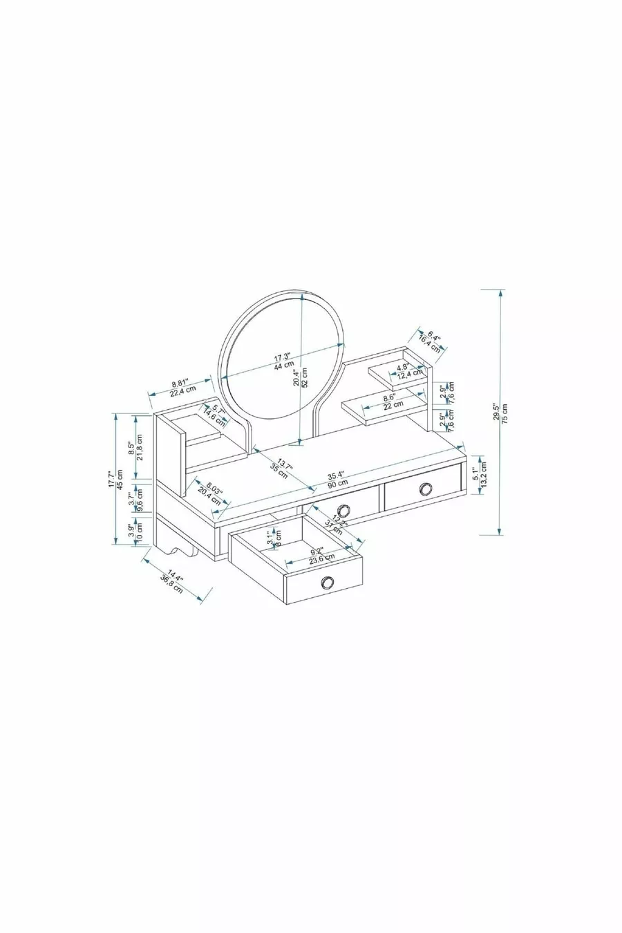 المادة: صنتالام الخاصية: مثبت على الحائط اللون: أبيض مدة الضمان: سنتان الارتفاع: 75 سم العرض: 90 سم وظيفة المرآة: مزودة بمرآة العمق: 35 سم النمط: عصري الطابع / النمط: ريترو