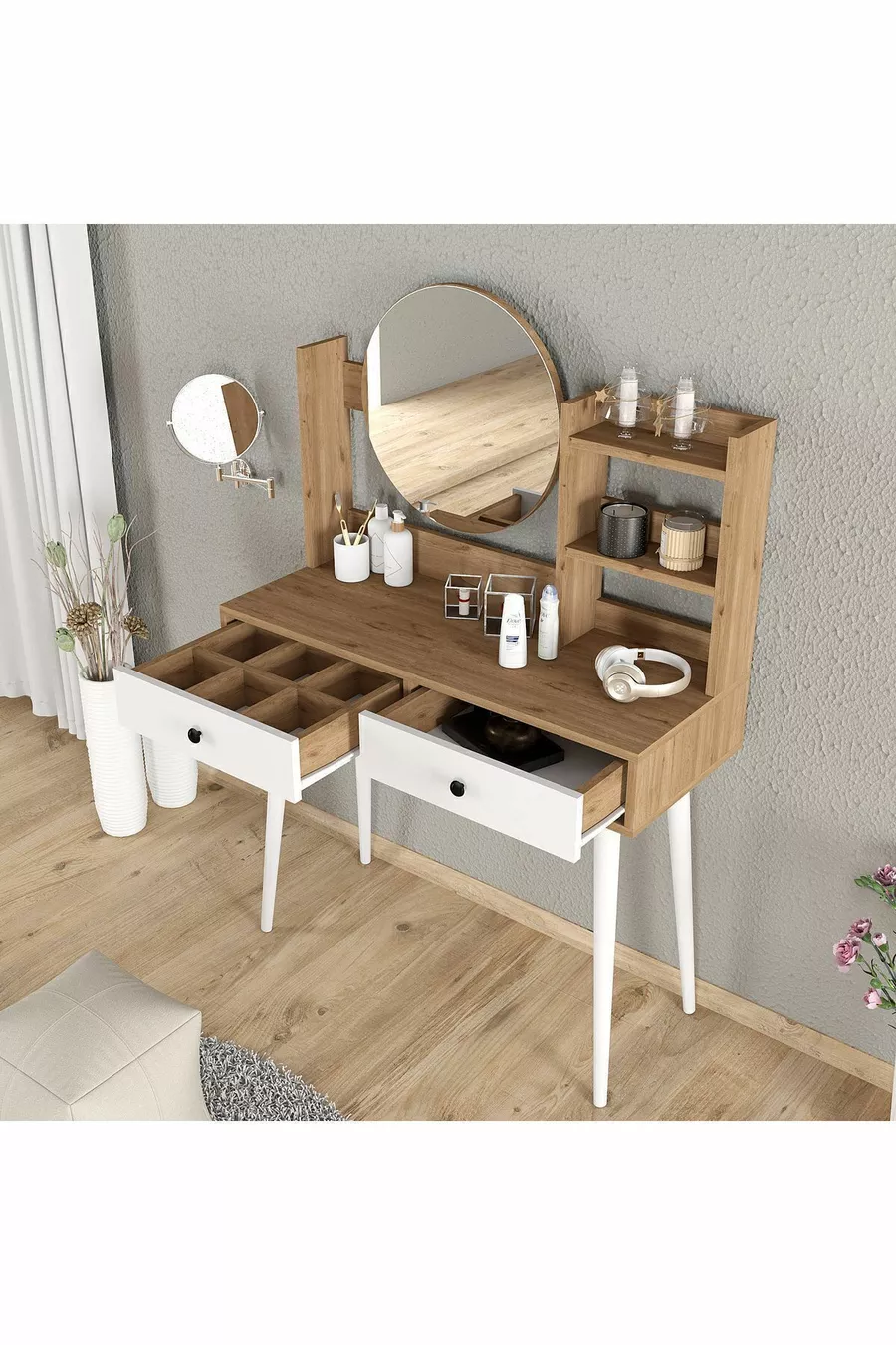 المادة: خشب الخاصية: ذو أرجل اللون: بني مدة الضمان: سنة واحدة الارتفاع: 73 سم العرض: 100 سم وظيفة المرآة: مزود بمرآة العمق: 40 سم الطراز: إسكندنافي الموضوع / الطراز: إسكندنافي