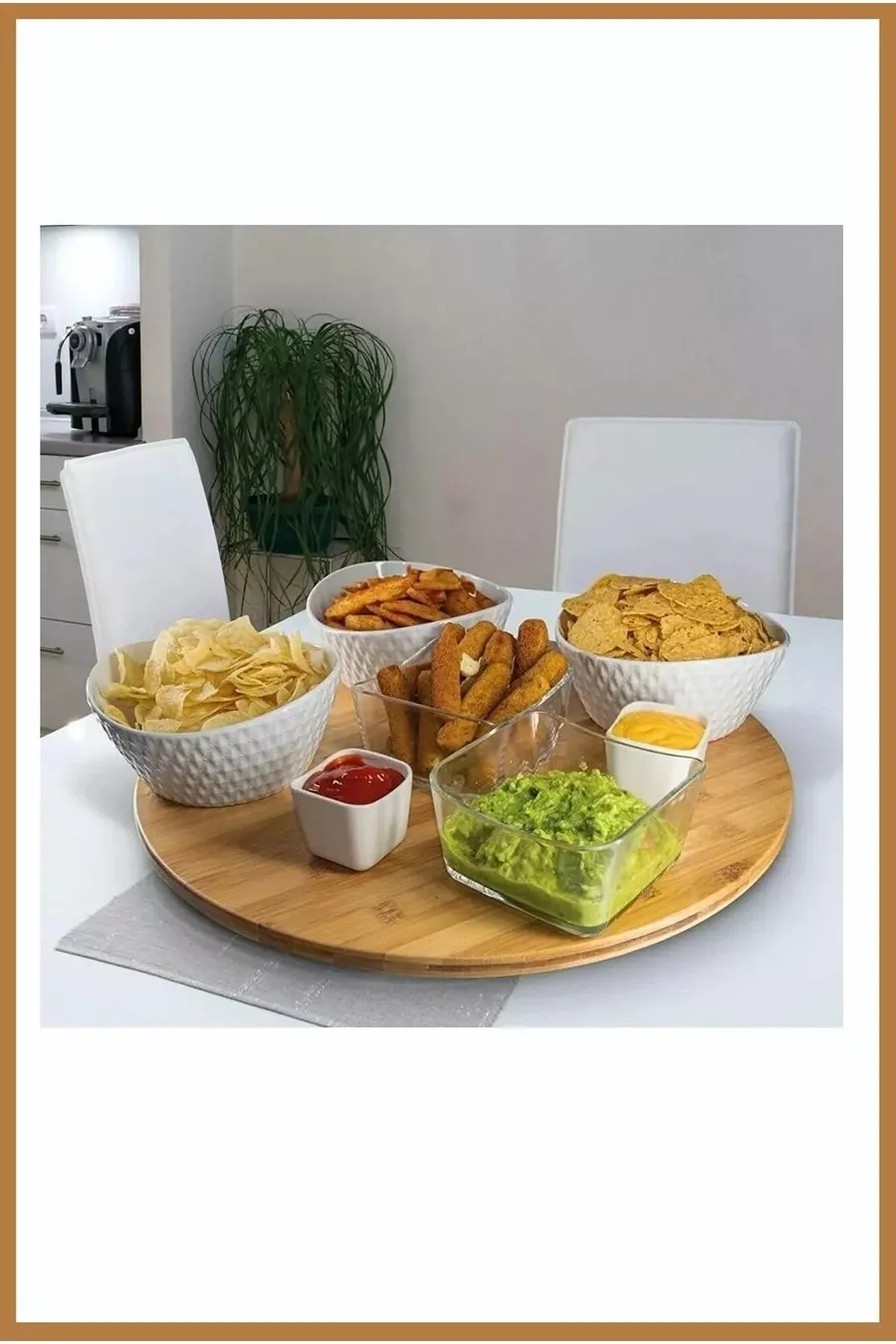 طبق تقديم دائري فاخر دوار من الخيزران للبيتزا والجبن، سم