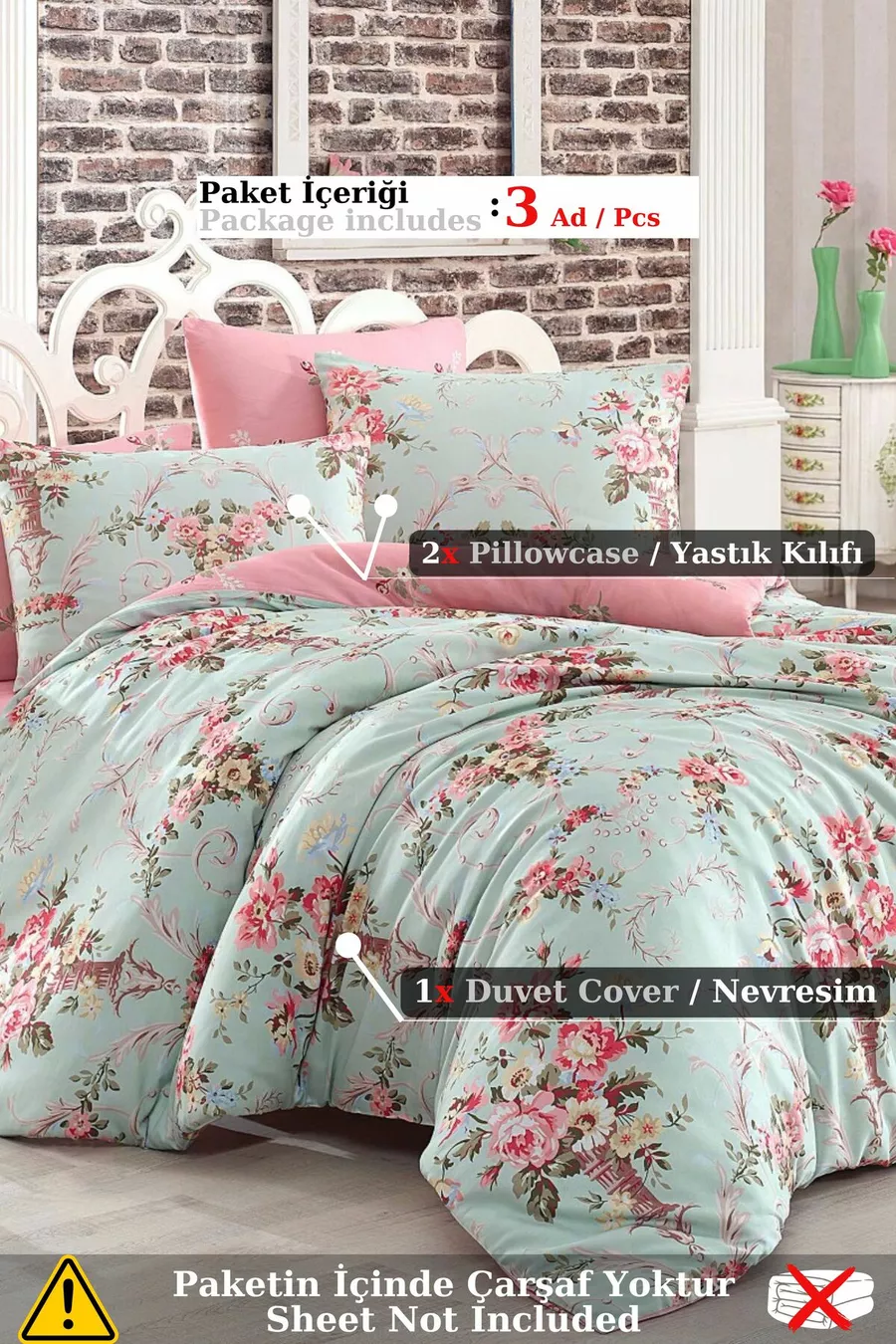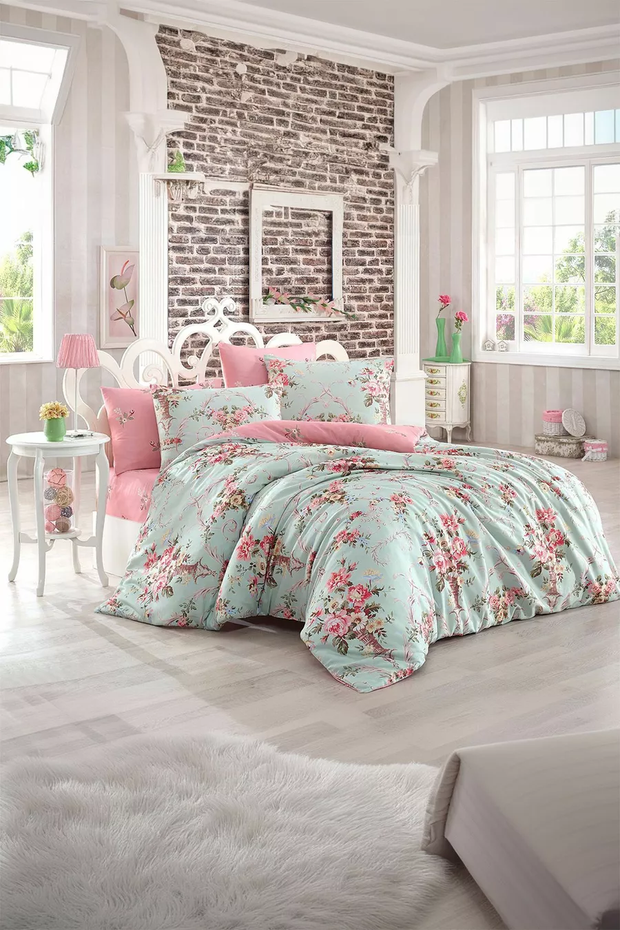 طقم أغطية سرير ناضج مزدوج ألانور باللون النعناعي والوردي