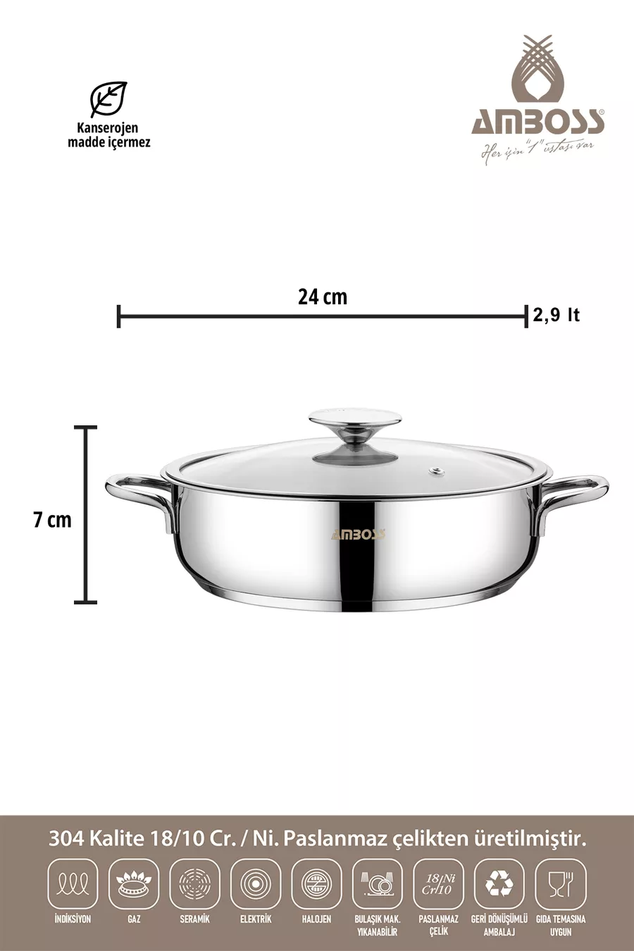 اللون: معدني الحجم/الأبعاد: 24 سم السعة: 2.5 لتر الميزة: يمكن استخدامه على موقد الحث المادة الخارجية: فولاذ المادة الداخلية: فولاذ عدد القطع: 8 المنشأ: تركيا المادة: زجاج