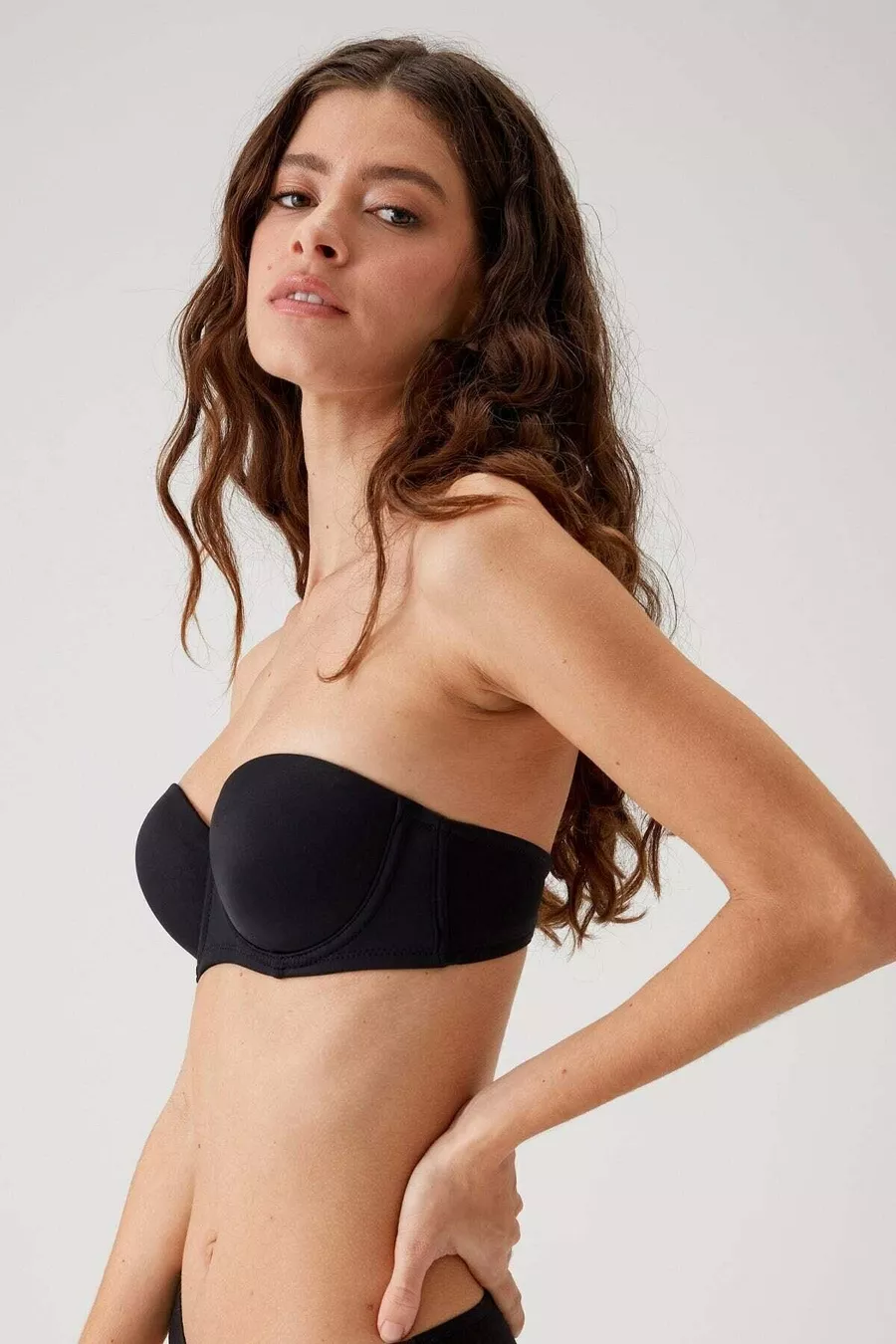طقم اقتصادي مكون من قطعتين باللونين الأسود والبيج سيينا صدرية بدون دعامة مع حمالات ودعامة داخلية من القطن