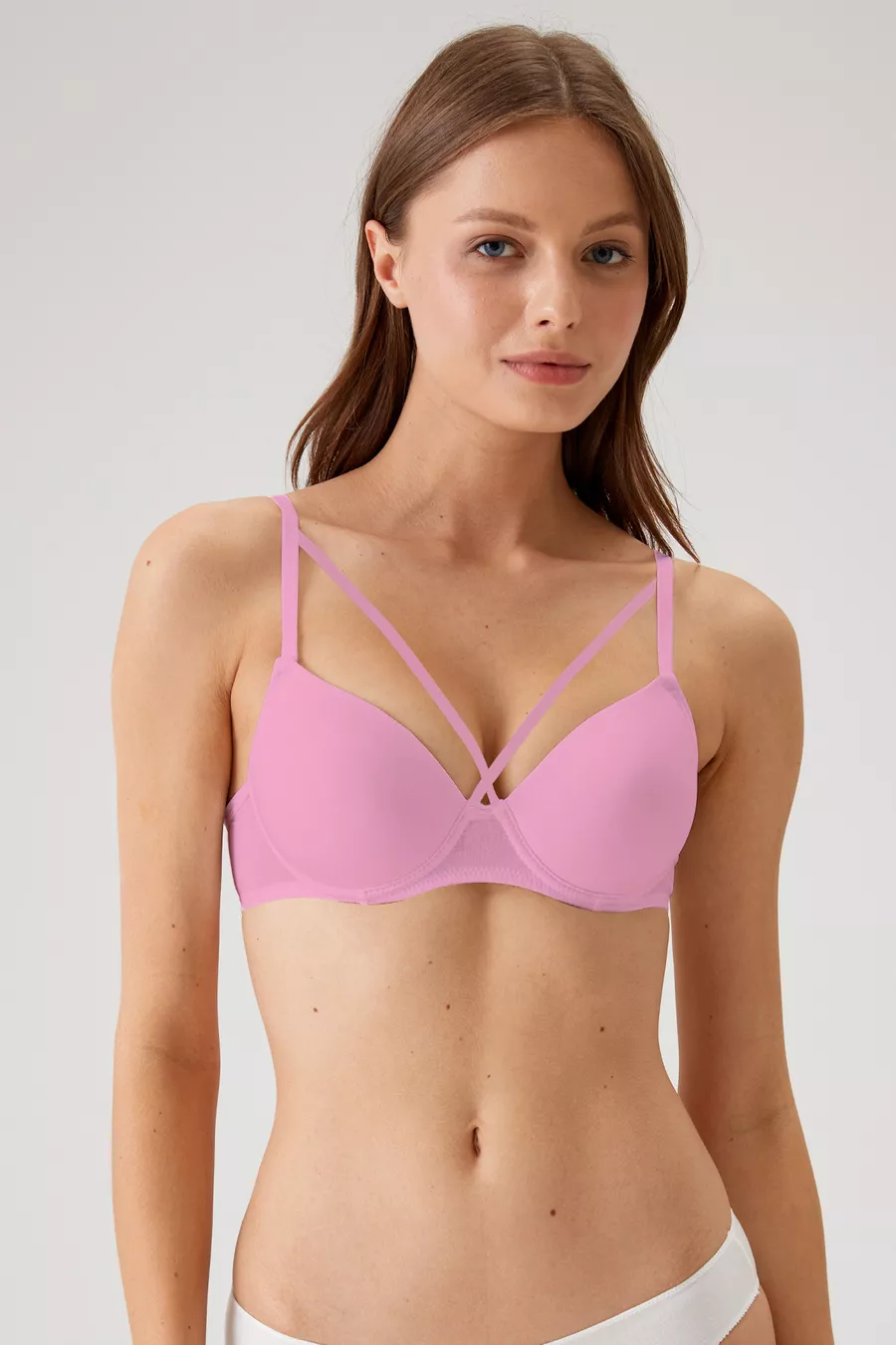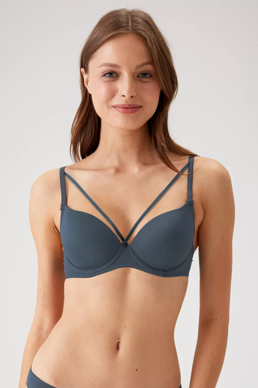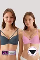 طقم اقتصادي مكون من قطعتين عدسات O.pink-أنثراسايت حمالة صدر ميكرو بدون حشوة مع تفاصيل شريطية (مع سروال هدية)