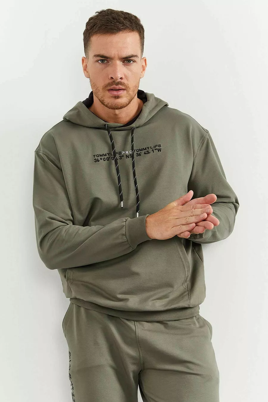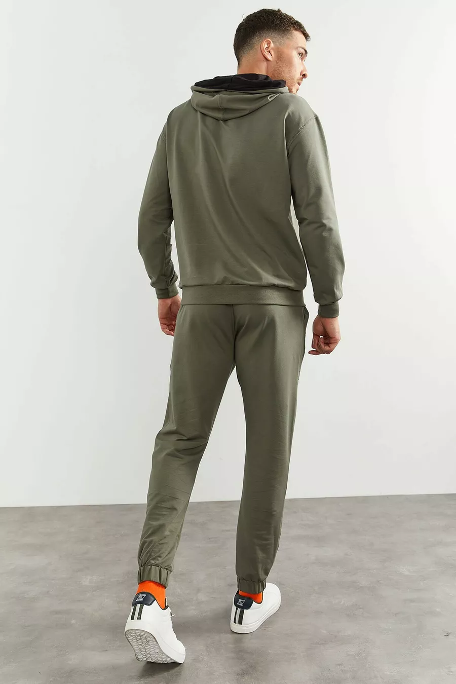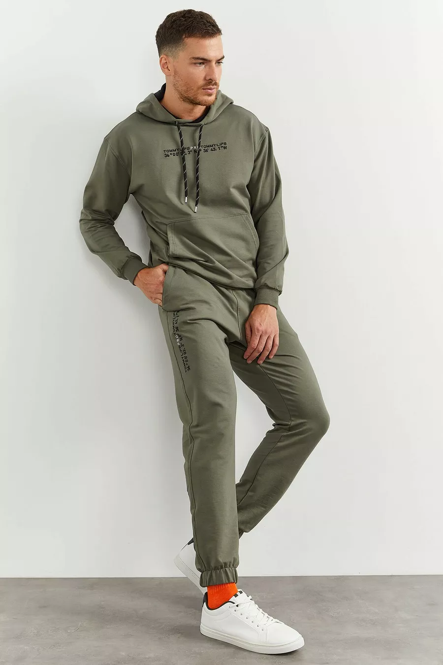 طقم رياضي رجالي فضفاض بجيب كنغر وغطاء رأس وأساور مطاطية -