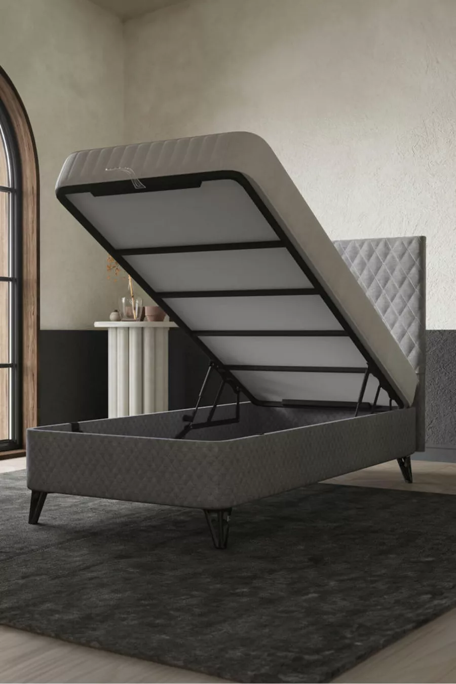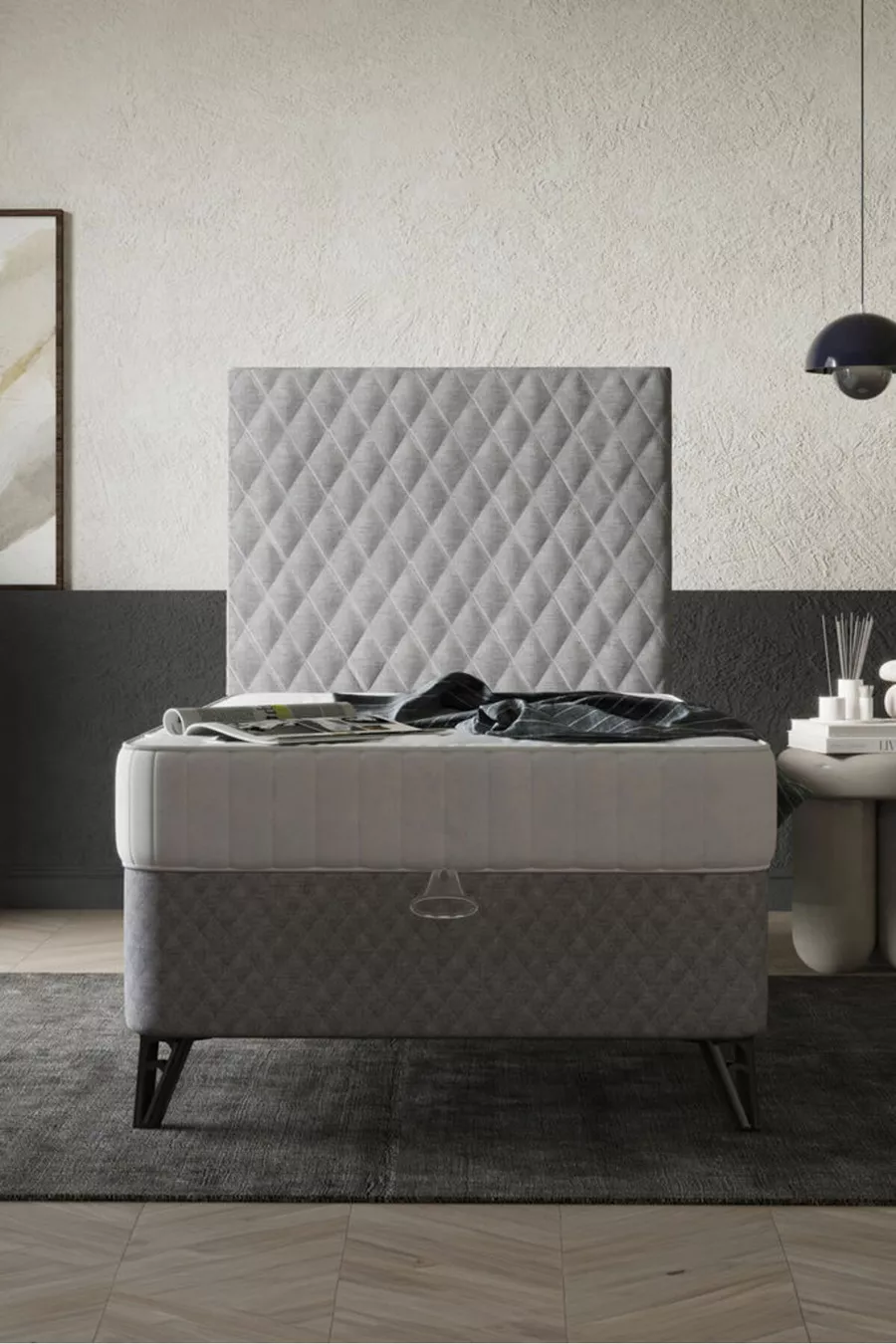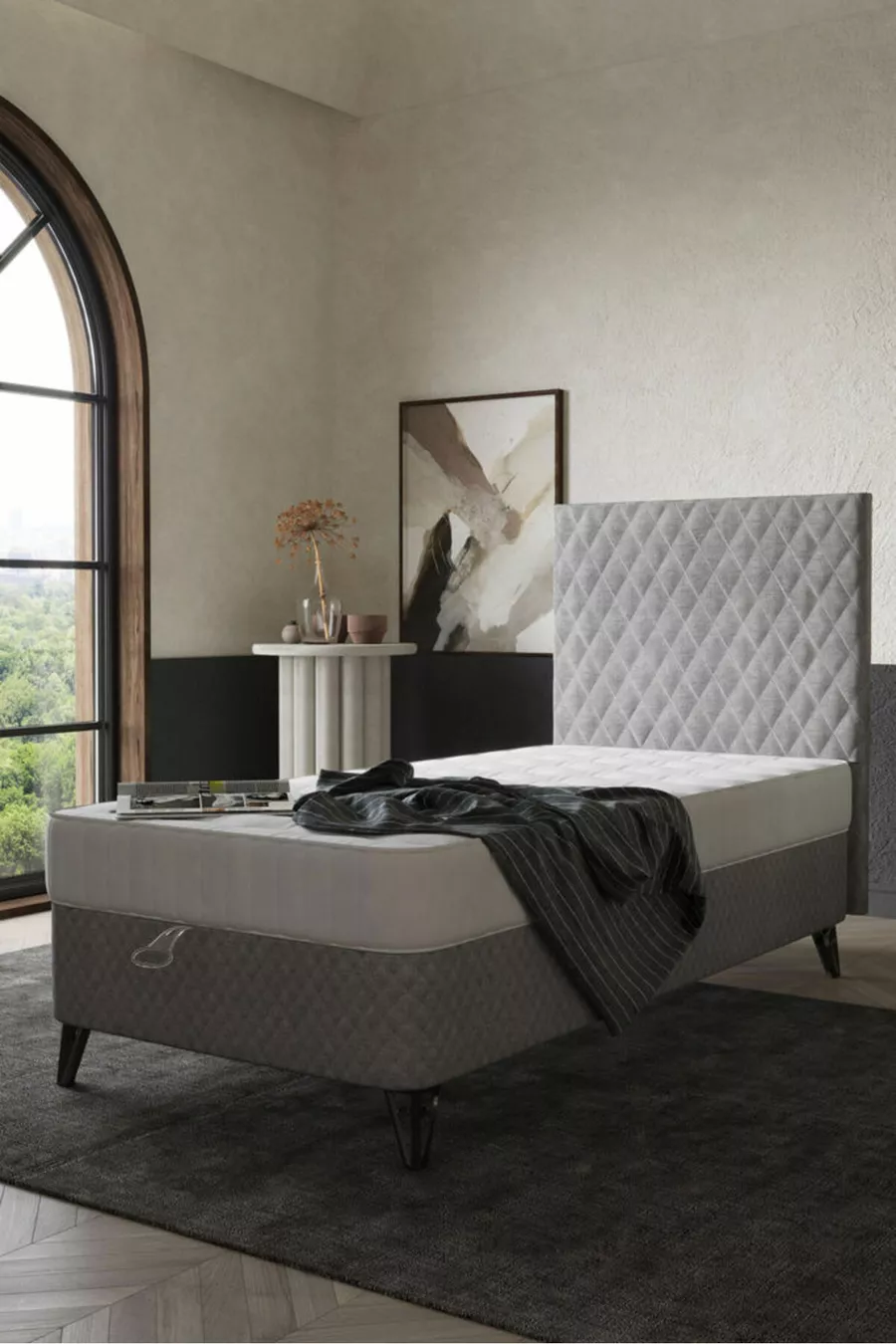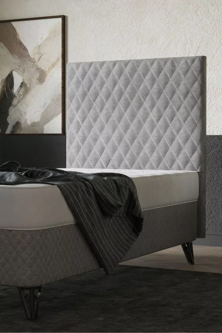 الحجم: فردي المادة: شنتالام مدة الضمان: سنتان نوع المجموعة: قاعدة + رأس السرير + فراش اللون: رمادي الطراز: ريفي الموضوع / الطراز: حديث المنشأ: تركيا الميزة: ذو أرجل