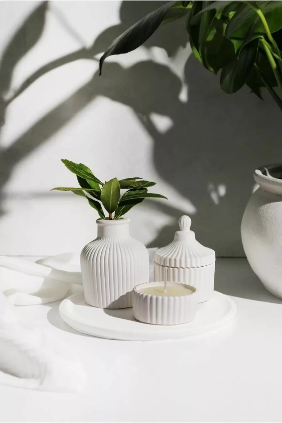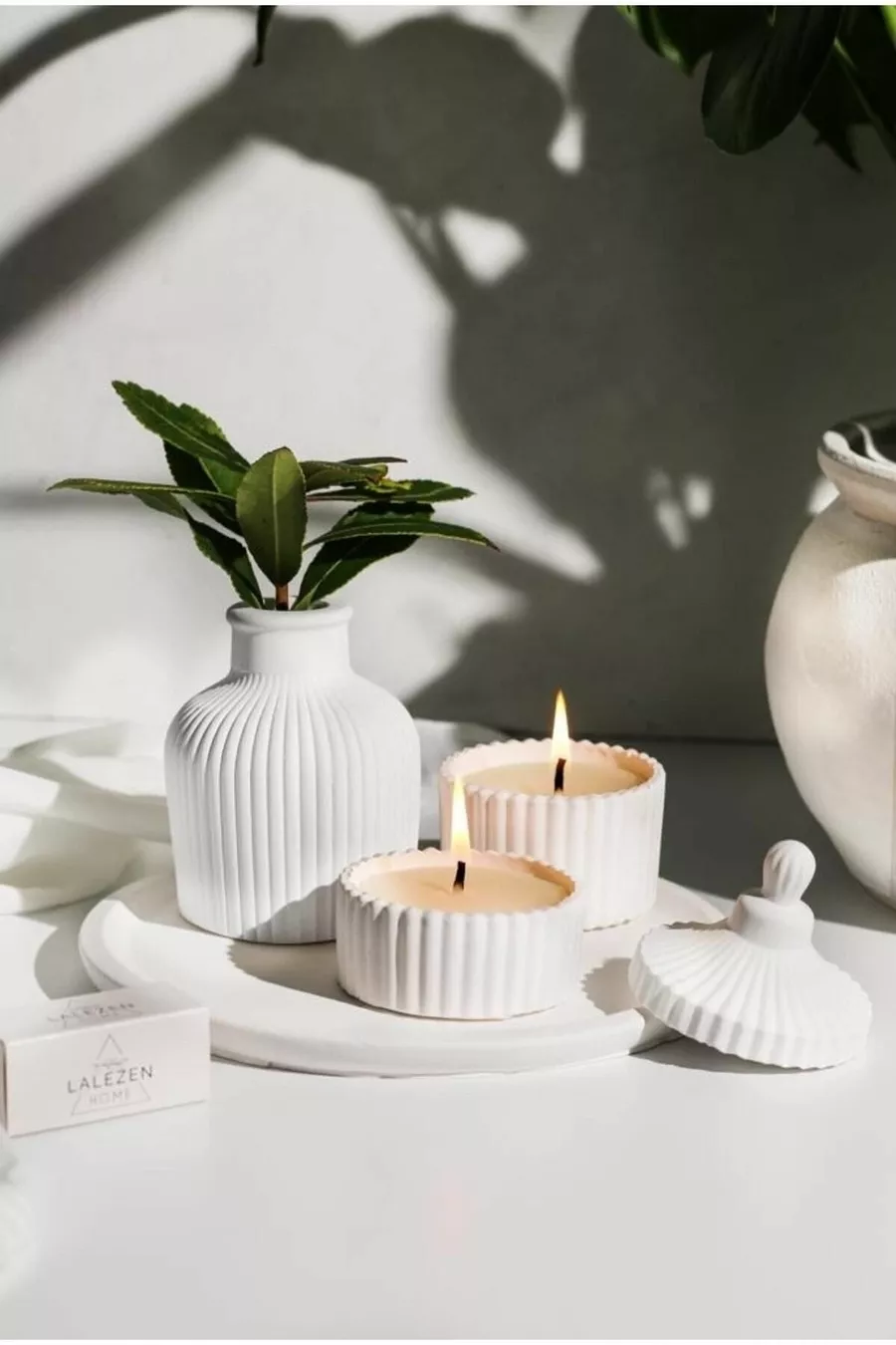 طقم شمعة و مزهرية بصحن دائري