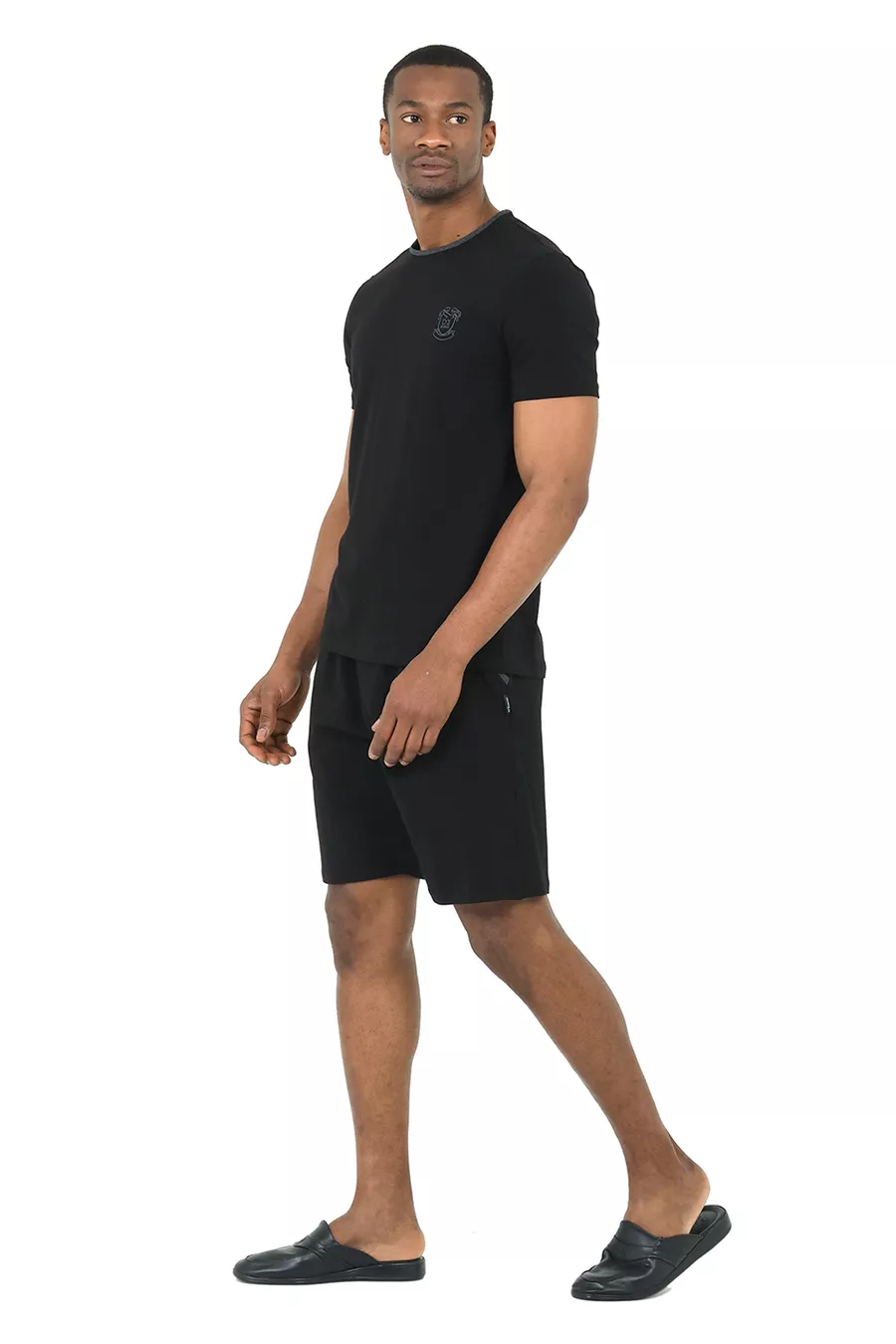 طقم شورت من قماش ديس ريلاكسد % قطن، % إيلاستان - أسود - سلسلة عالية الجودة